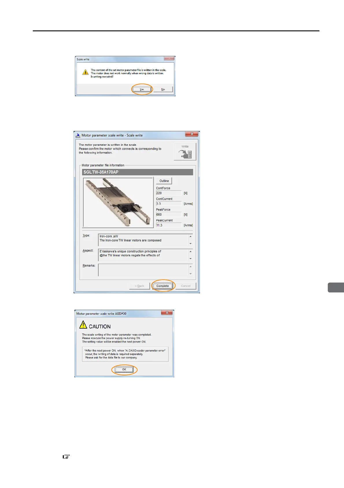 If you click the Yes Button, writing the motor parameter scale will start.