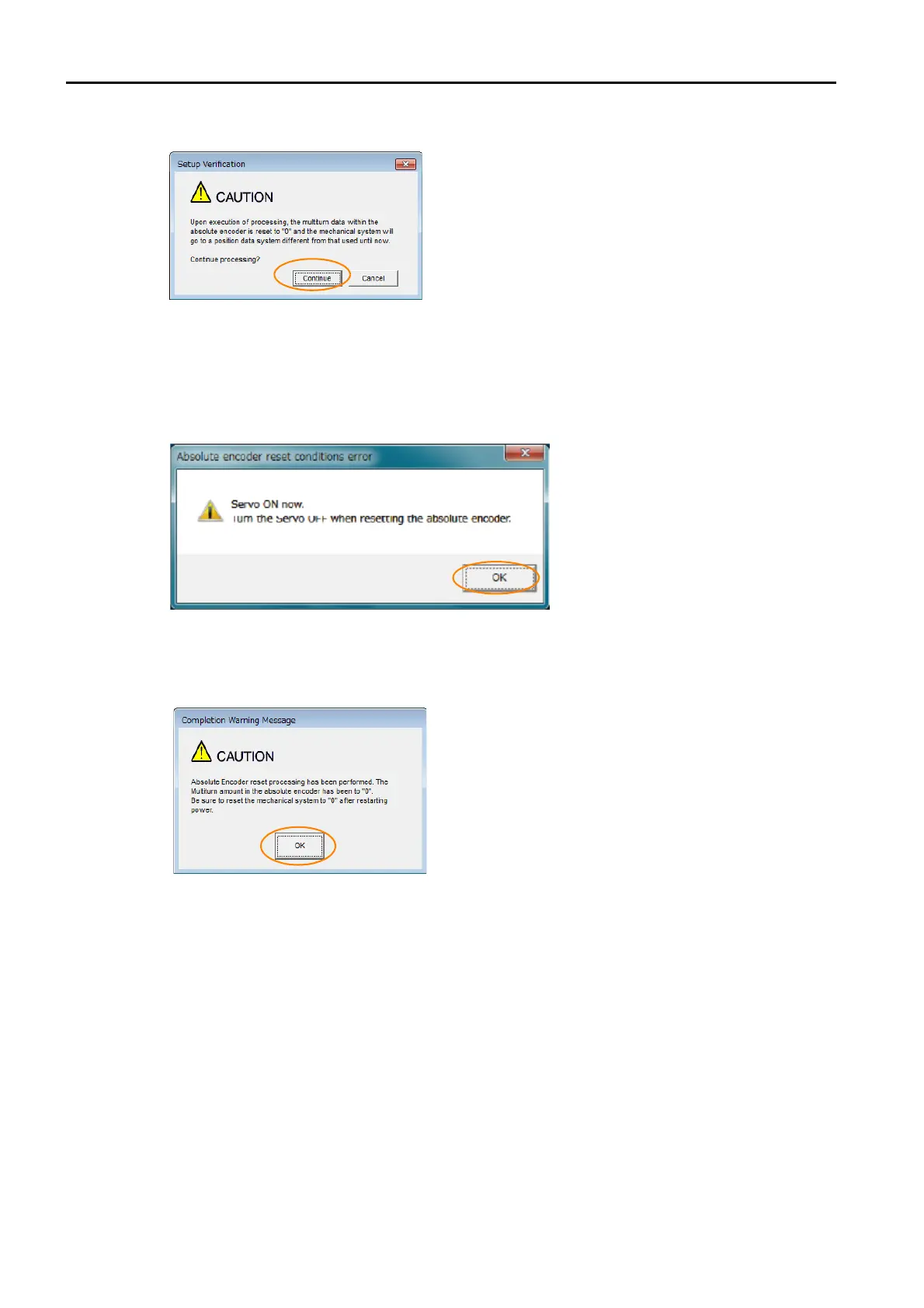 The following dialog box will be displayed when the absolute encoder has been reset.