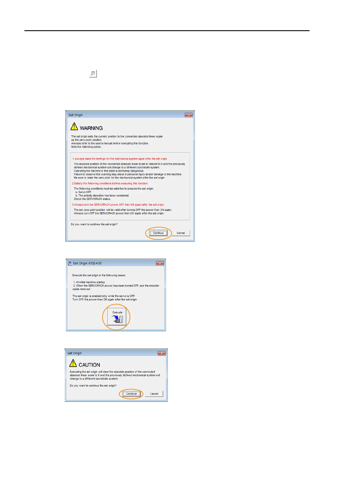 Click the Cancel Button to cancel setting the origin of the absolute linear encoder. The previous dia-