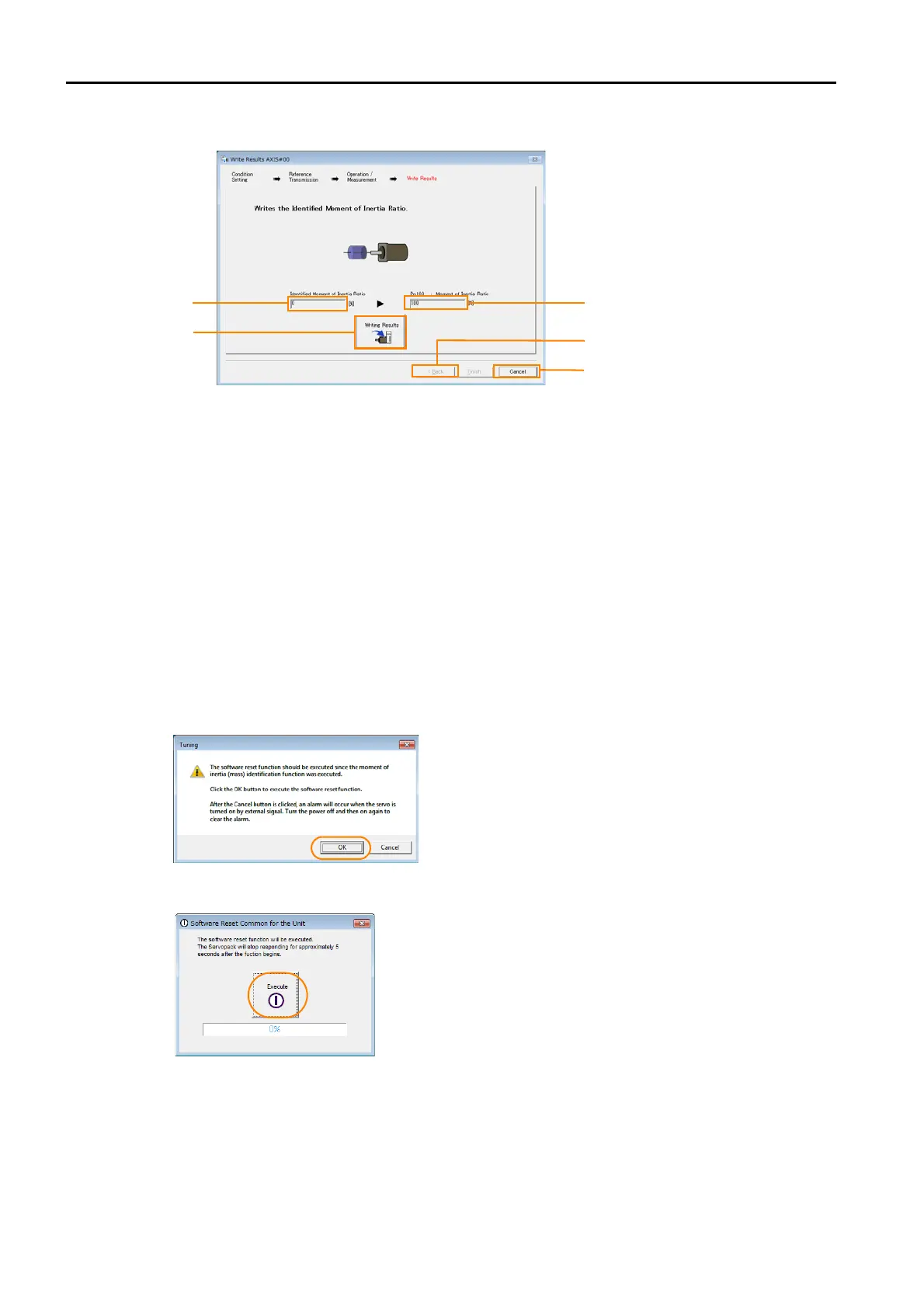 If you click this button, Pn103 (Moment of Inertia Ratio) in the SERVOPACK is set to the