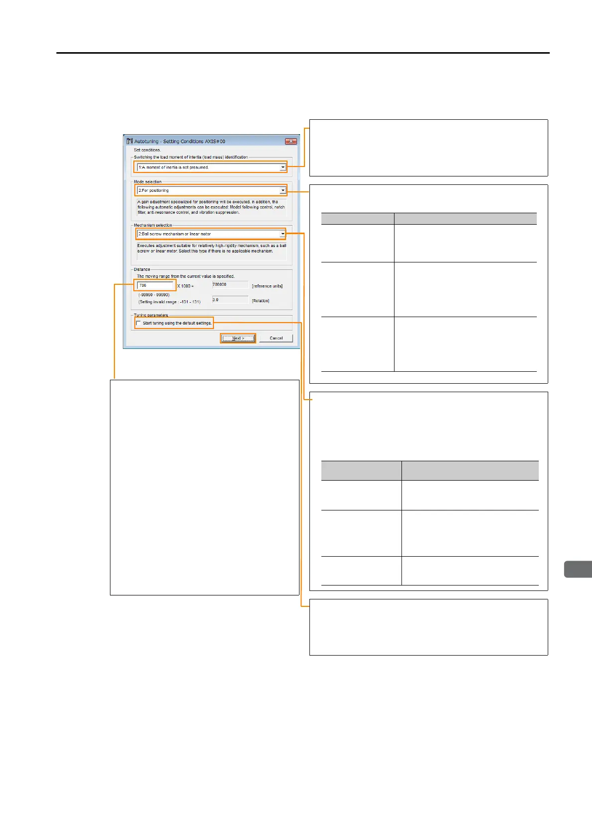 Set the conditions in the Switching the load moment of inertia (load mass) identifica-