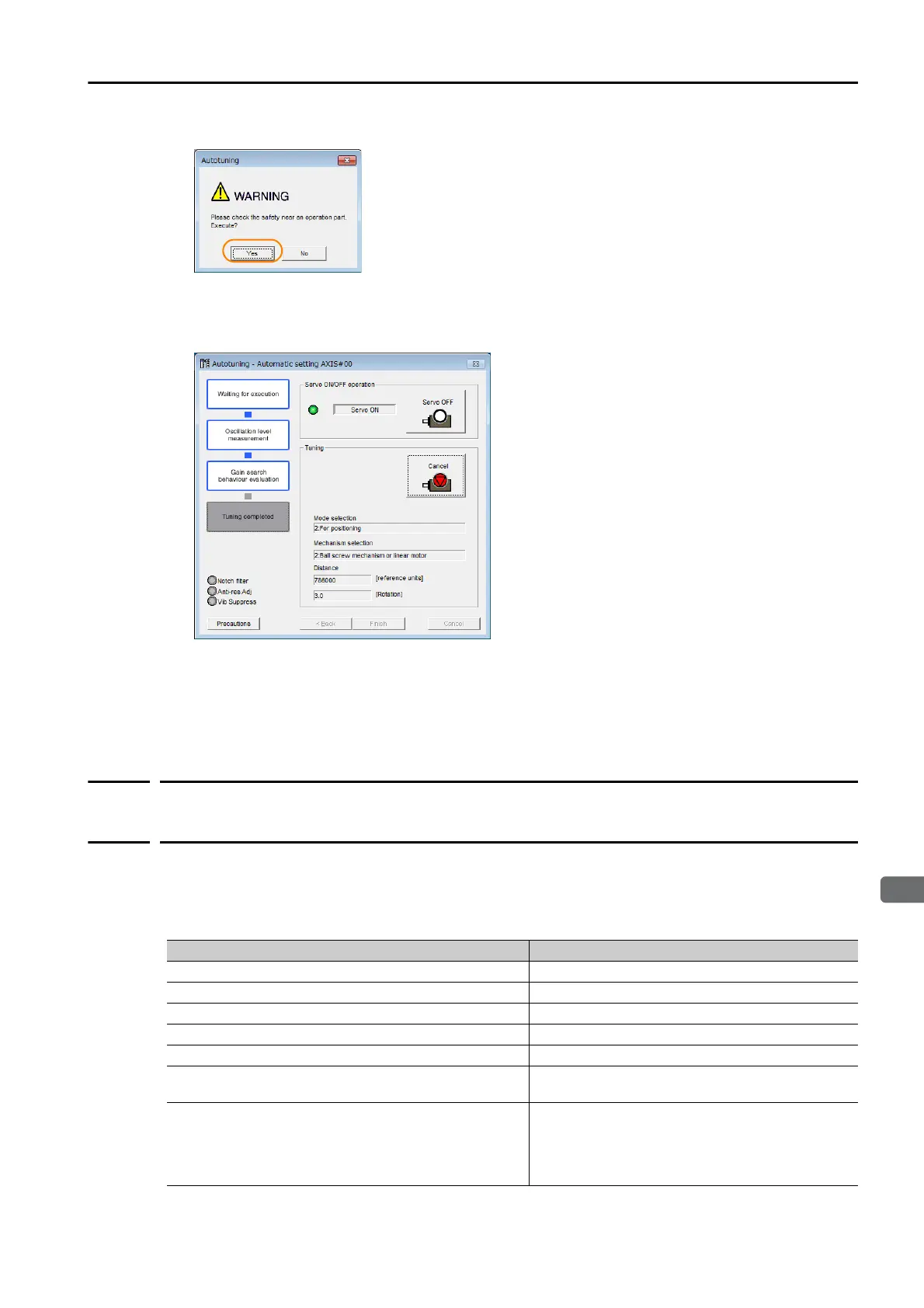 The Servomotor will start operating and tuning will be executed.