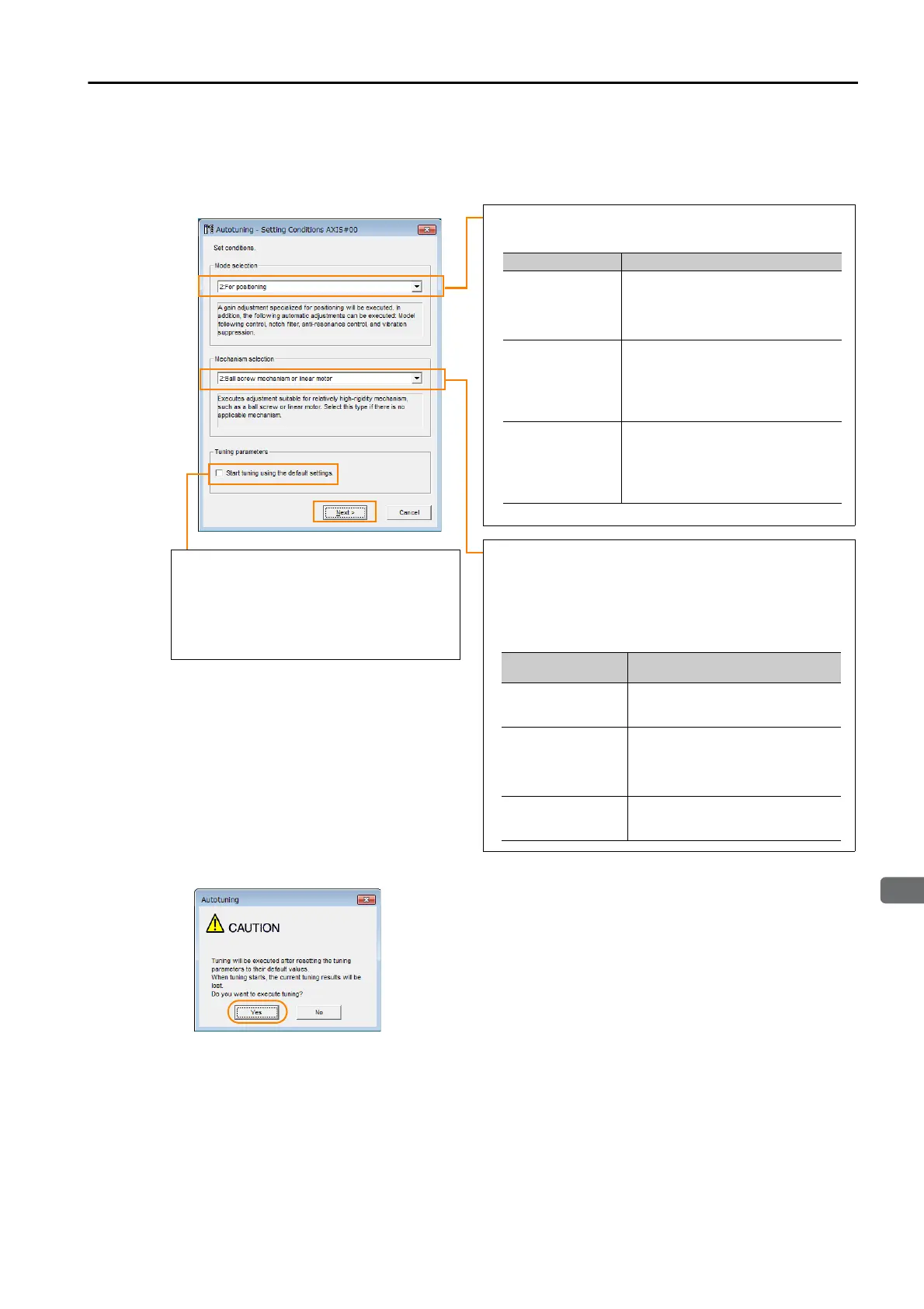 If you select the Start tuning using the default settings Check Box in the Tuning parameters Area,