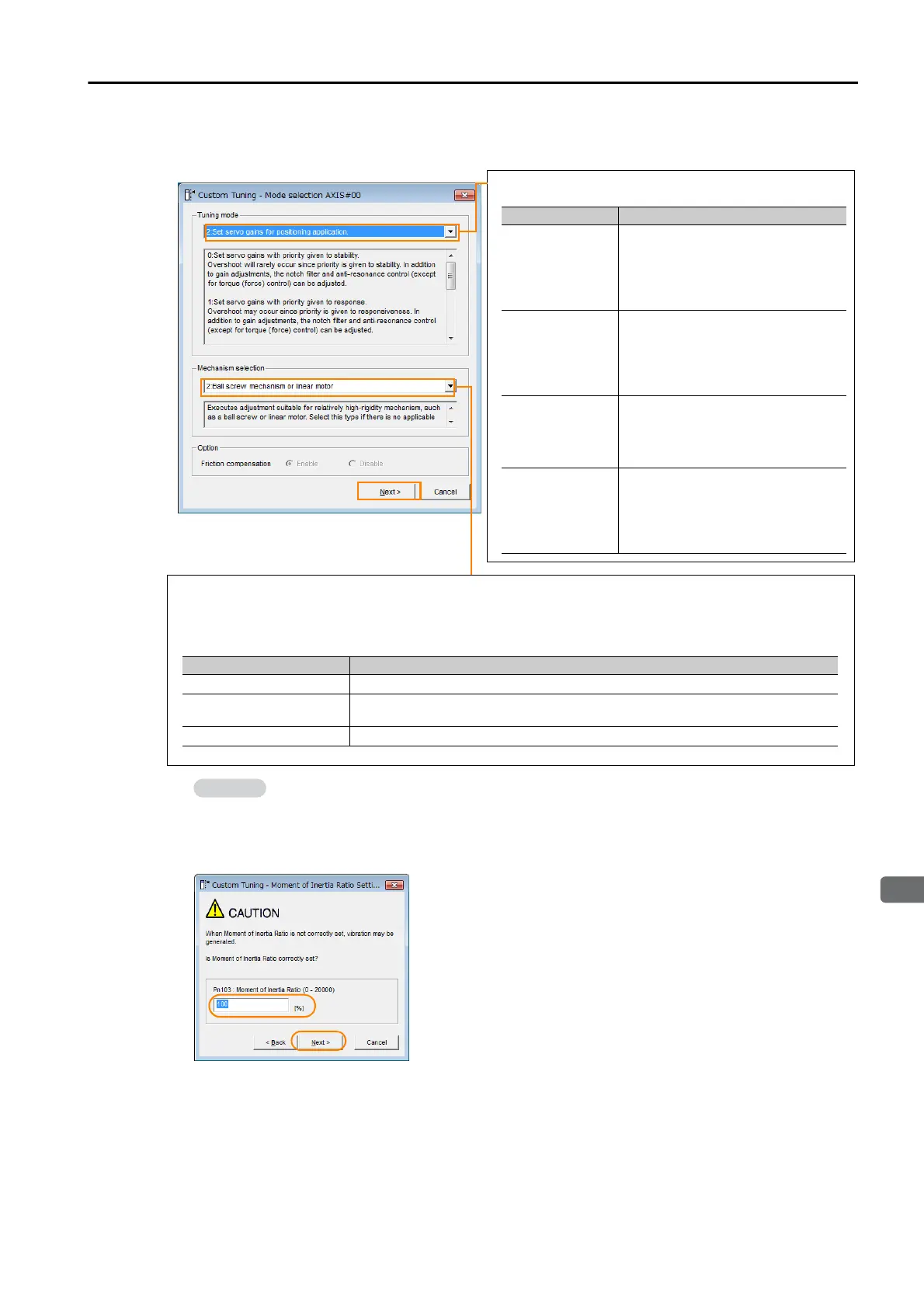 Set the Tuning mode Box and Mechanism selection Box, and then click the Next But-