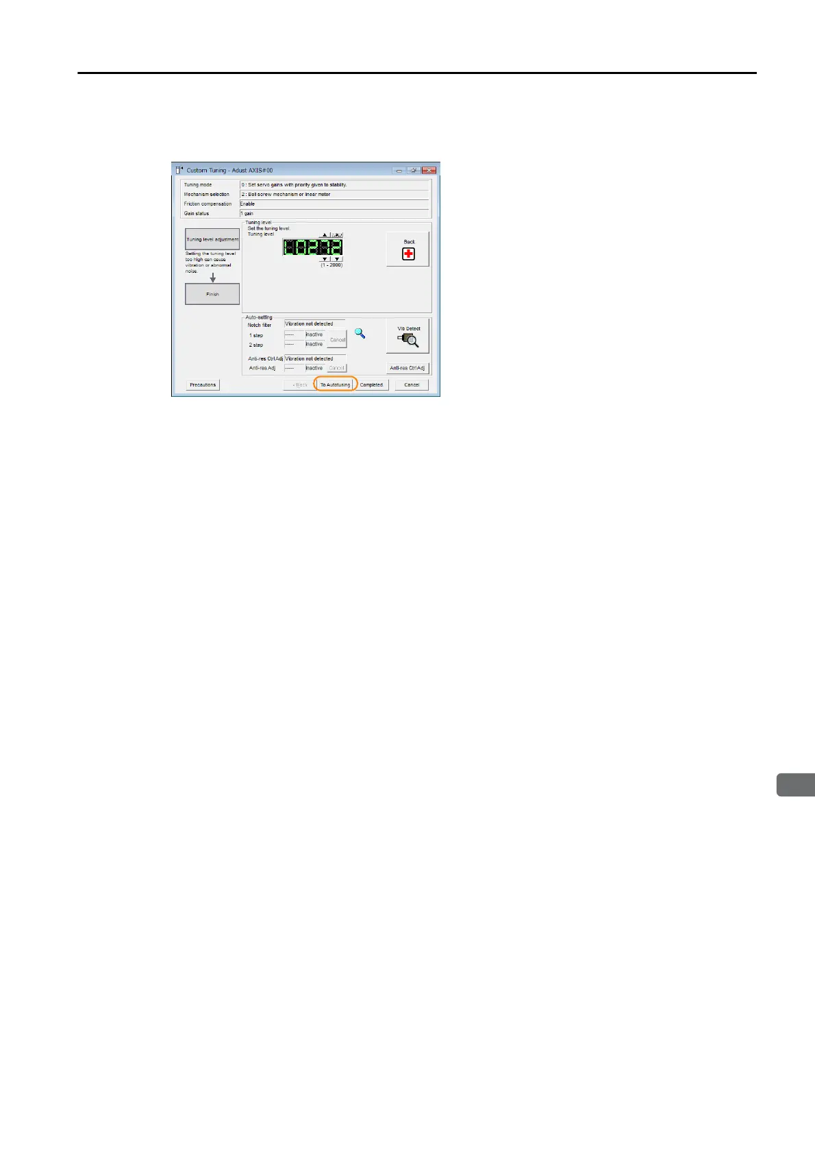 The values that were changed will be saved in the SERVOPACK and you will return to the Tuning Dia-
