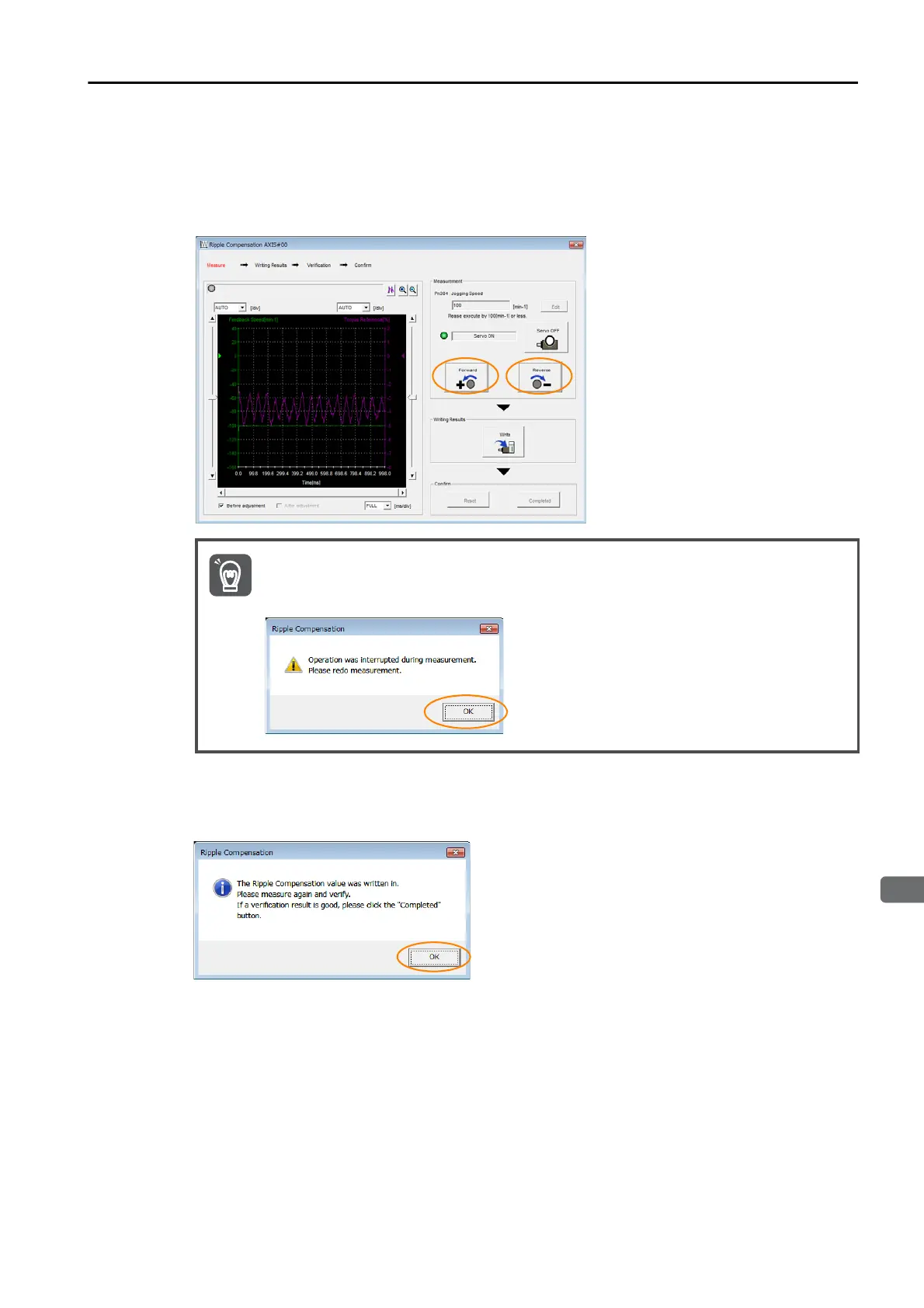 The feedback speed and torque reference graph will be displayed in the Ripple Compensation Dialog