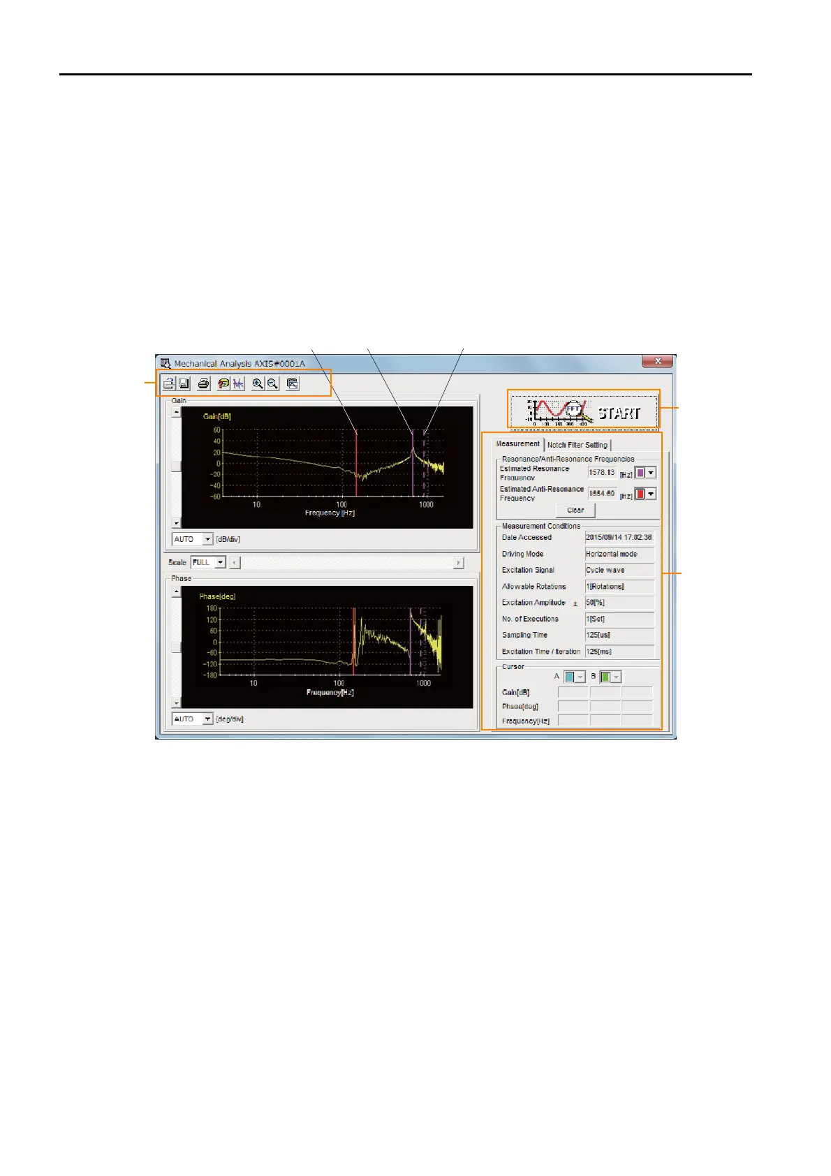 Notch Filter Setting Tab Page: Displays the notch filter frequencies. You can set these values in the parameters.