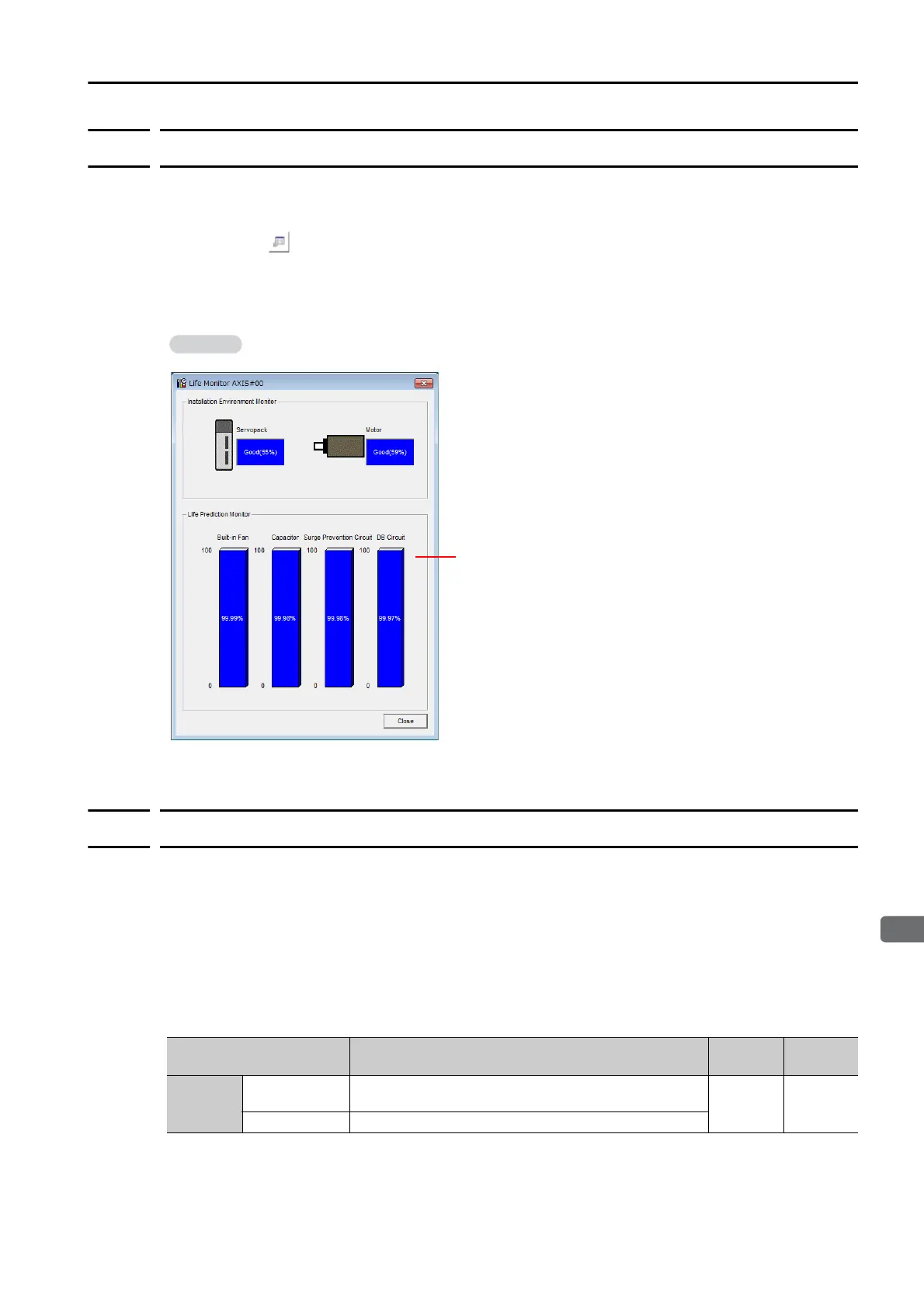 service life prediction values drops to 10% or less: SERVOPACK built-in fan life, capacitor life,