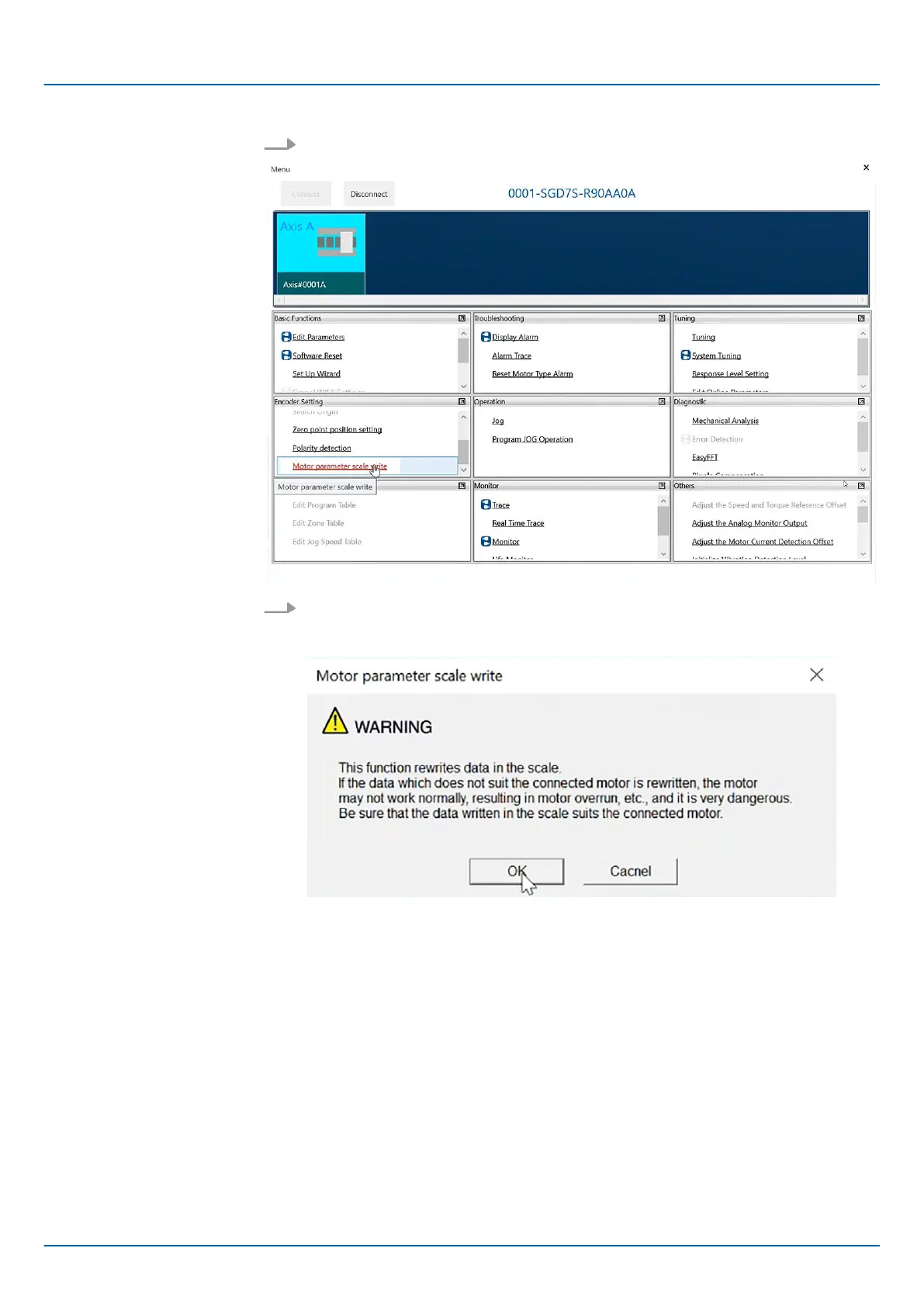 1. Select “Encoder Setting > Motor parameter scale write”.