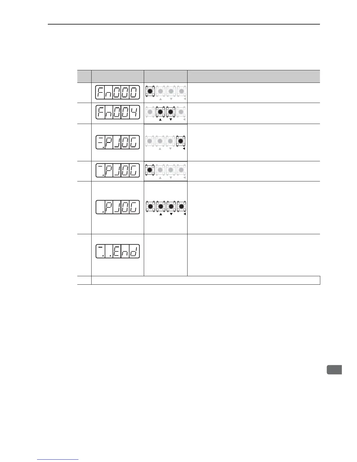 4 Press the MODE/SET Key. The servomotor turns ON.