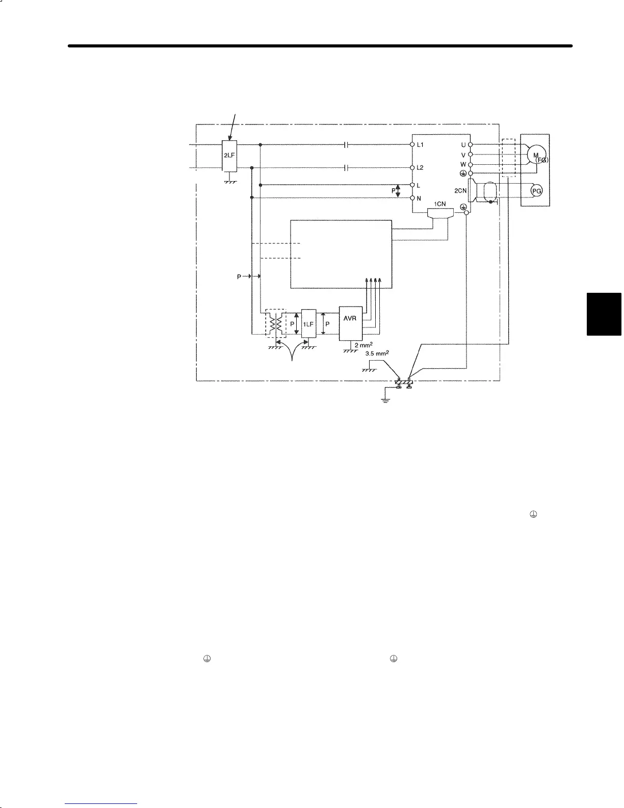 the Servopack power unit through motor stray capacitance. The above grounding is re-