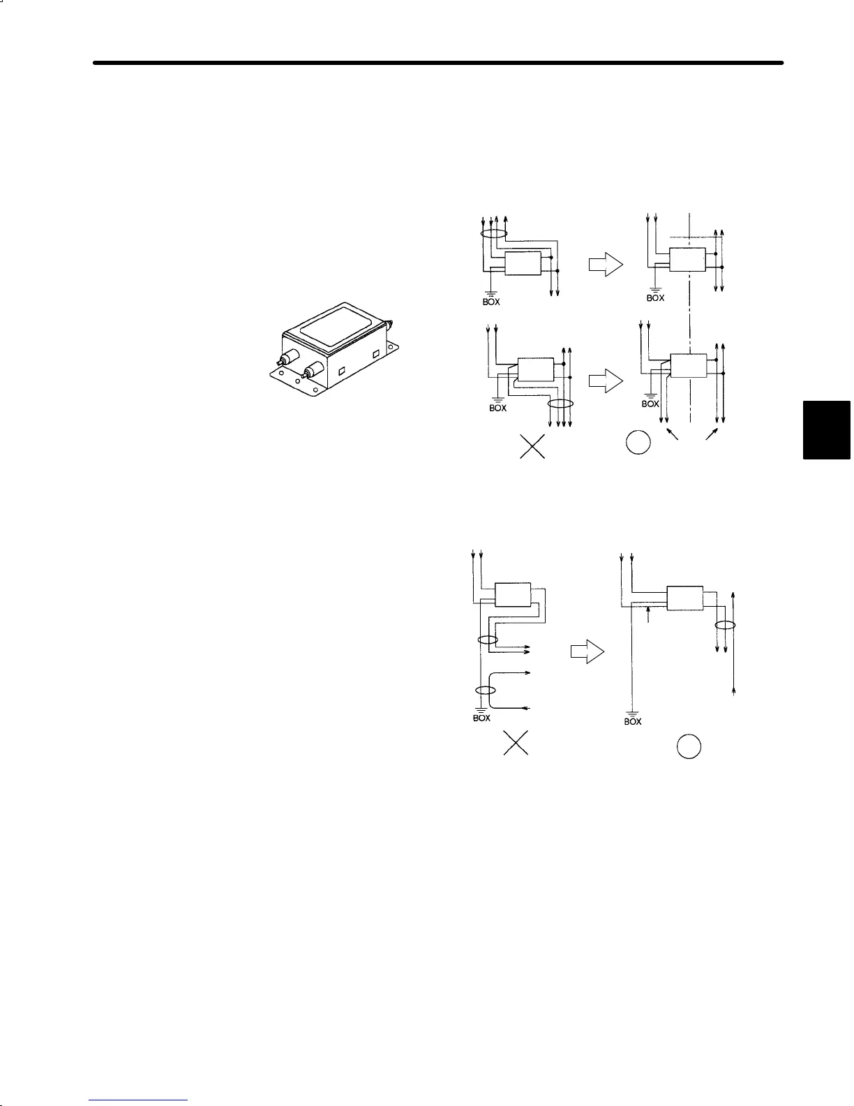 • Separate the noise filter ground wire from the output lines.