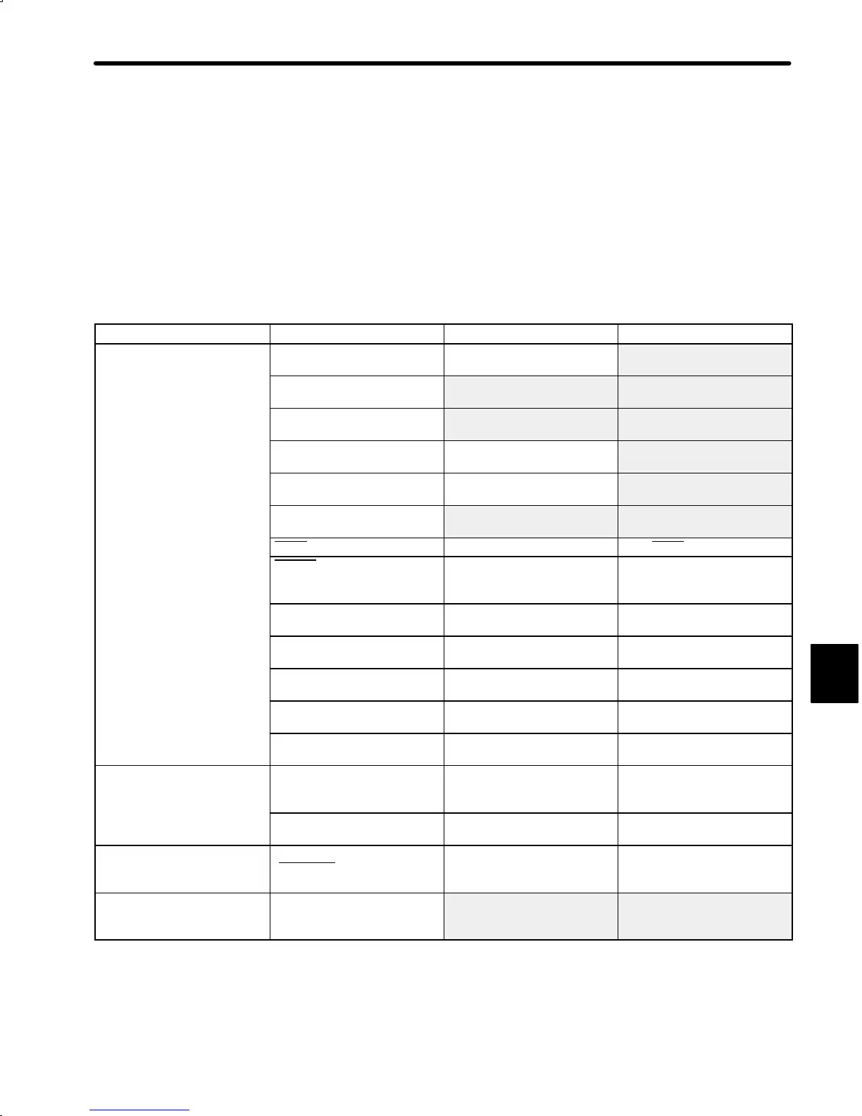 Refer to the tables below to identify the cause of a problem which causes no alarm display