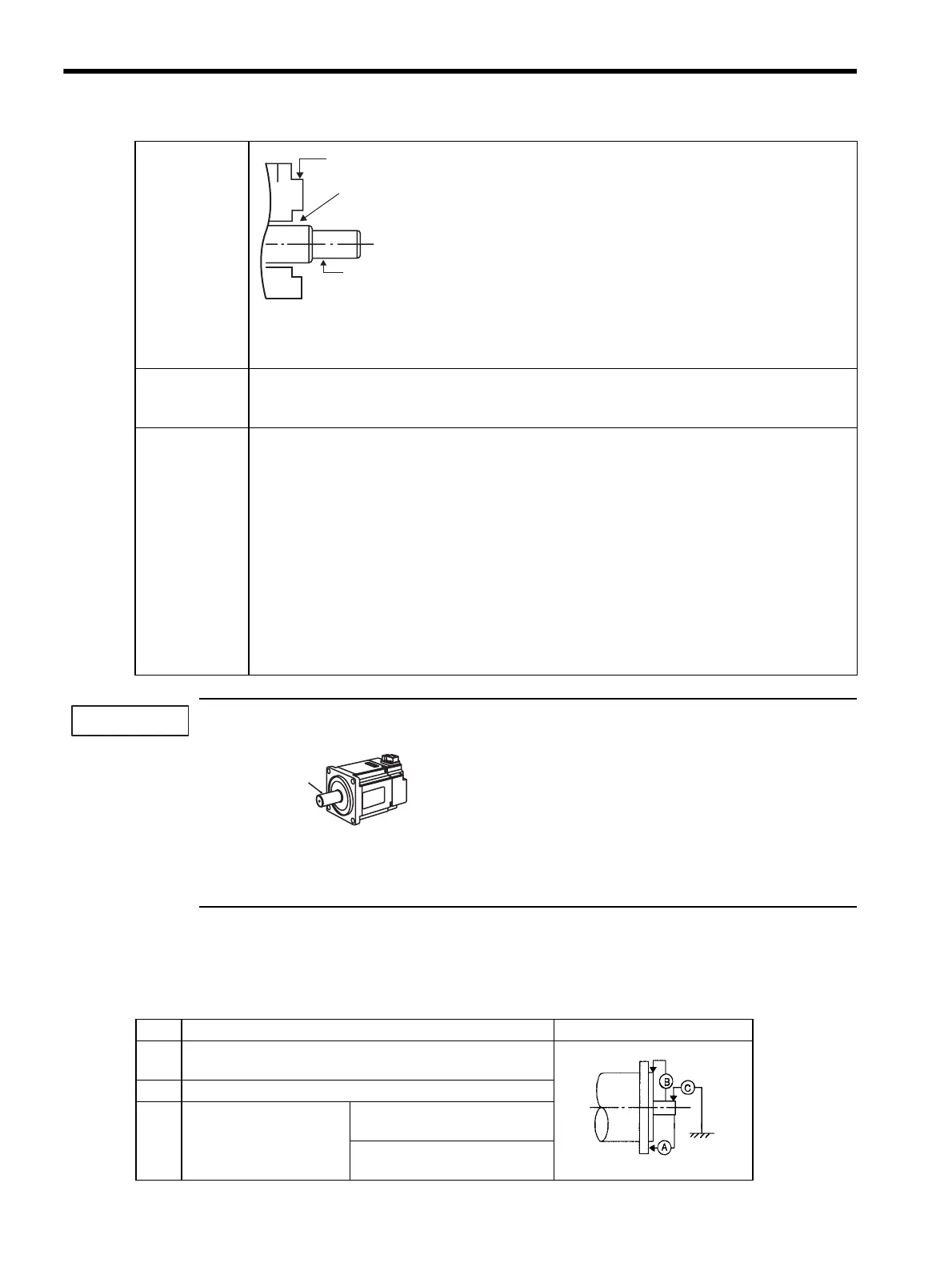 The following table shows tolerances for the servomotor’s output shaft and installation area. For more details on