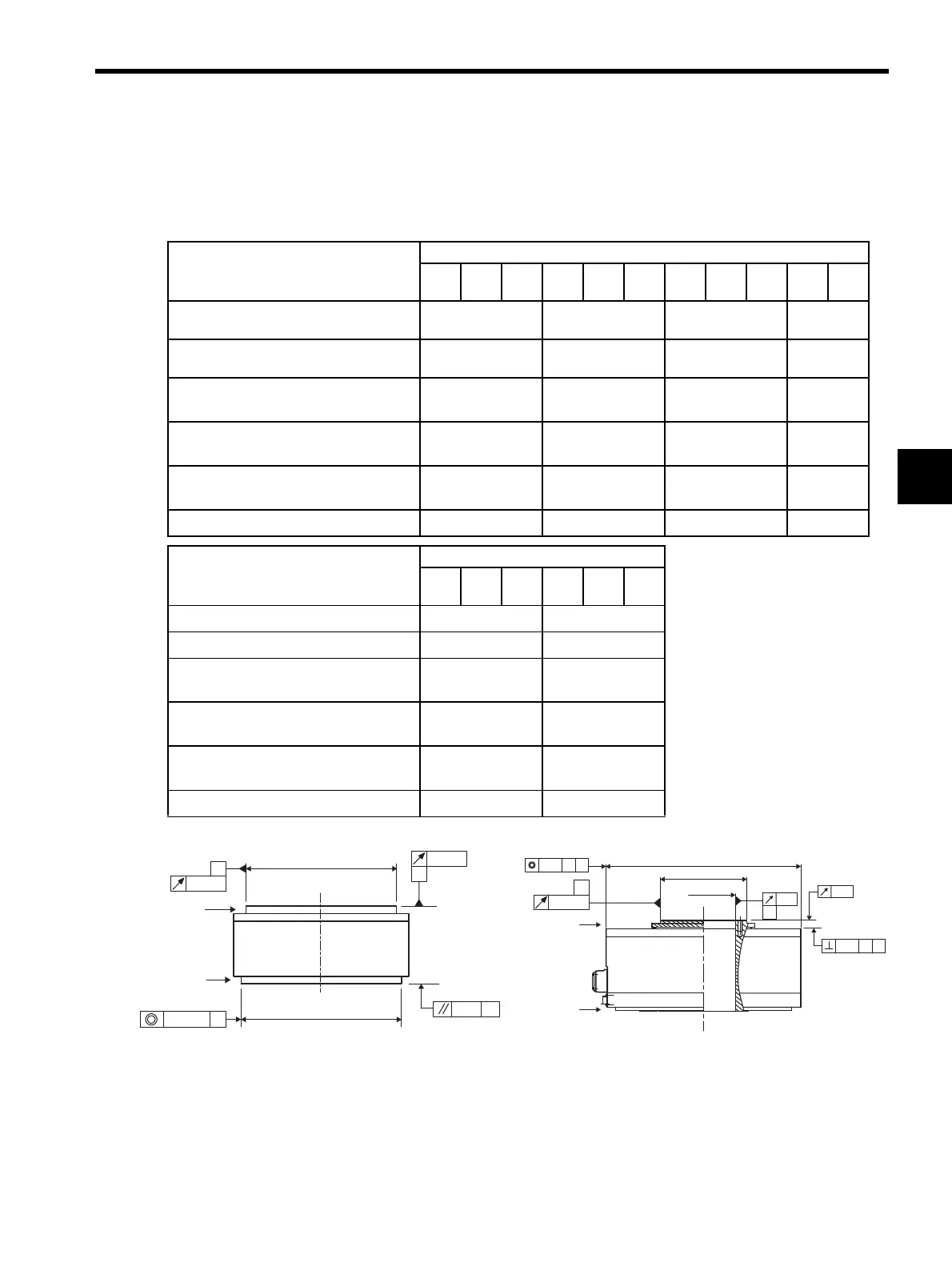 The following table shows tolerances for the servomotor’s output shaft and installation area. See the dimensional