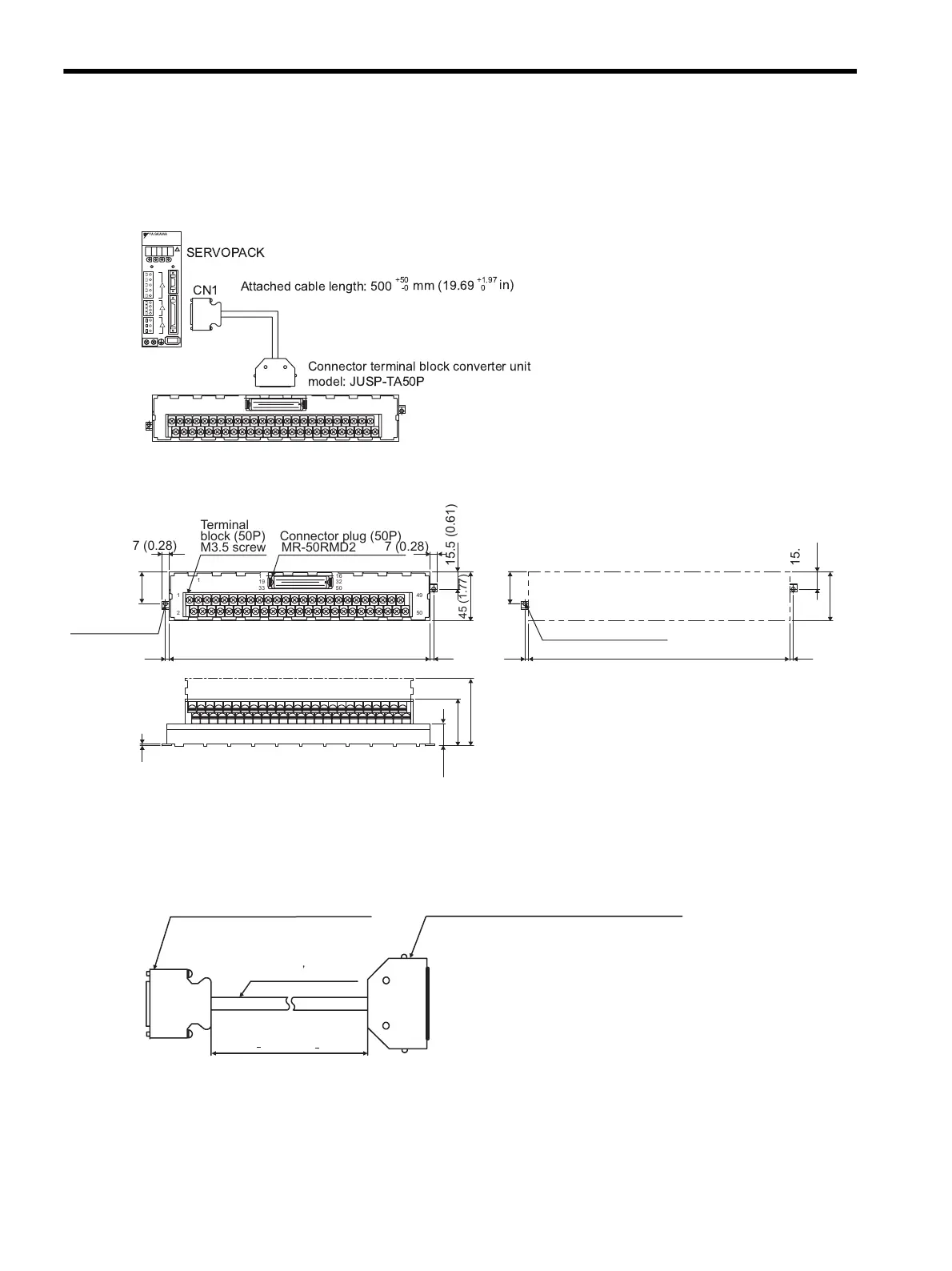 The connection between the connector terminal block converter and the SERVOPACK is shown below.