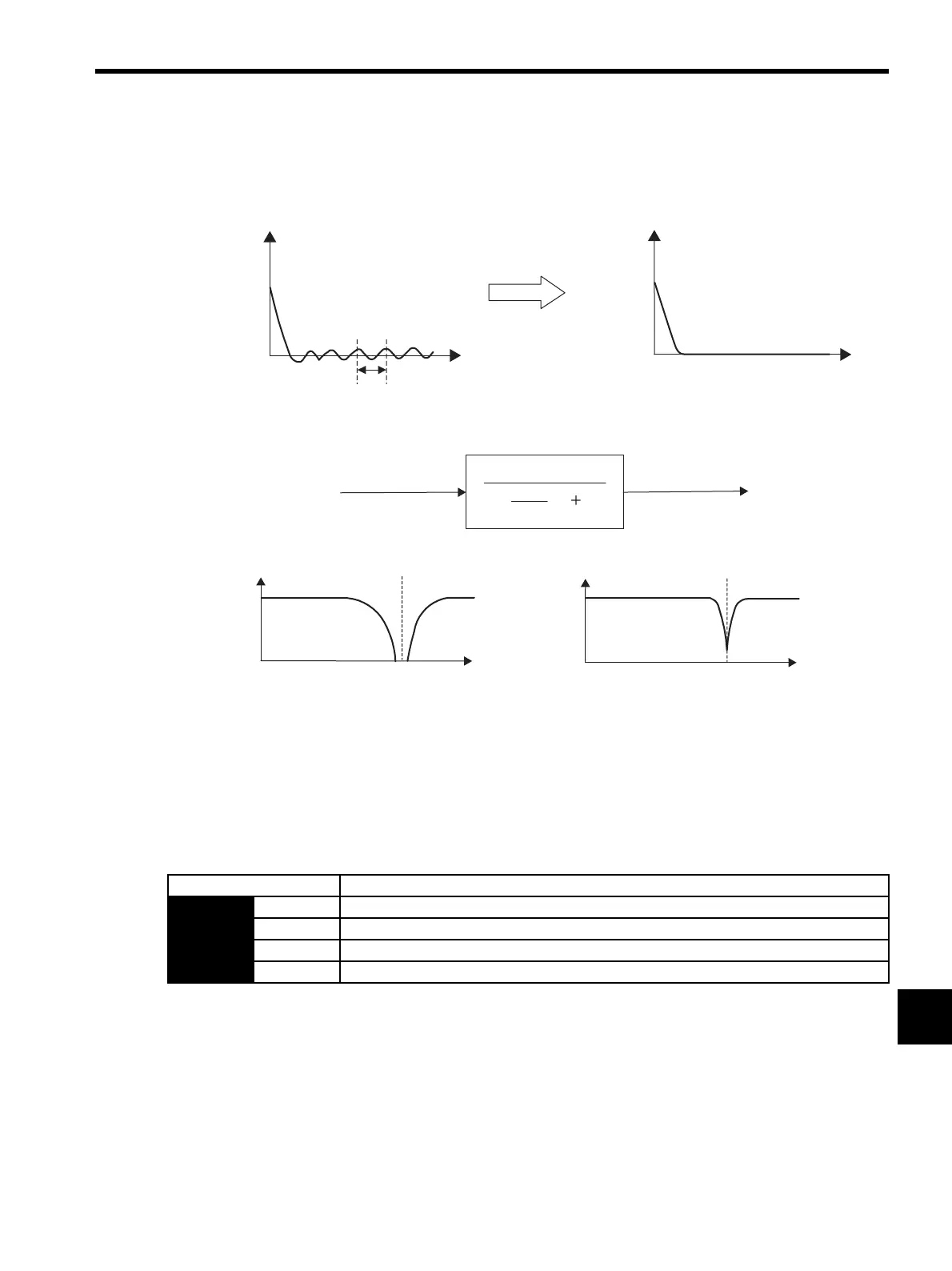 The notch filter function decreases the response to the set frequency, and effective when there are machine vibra-