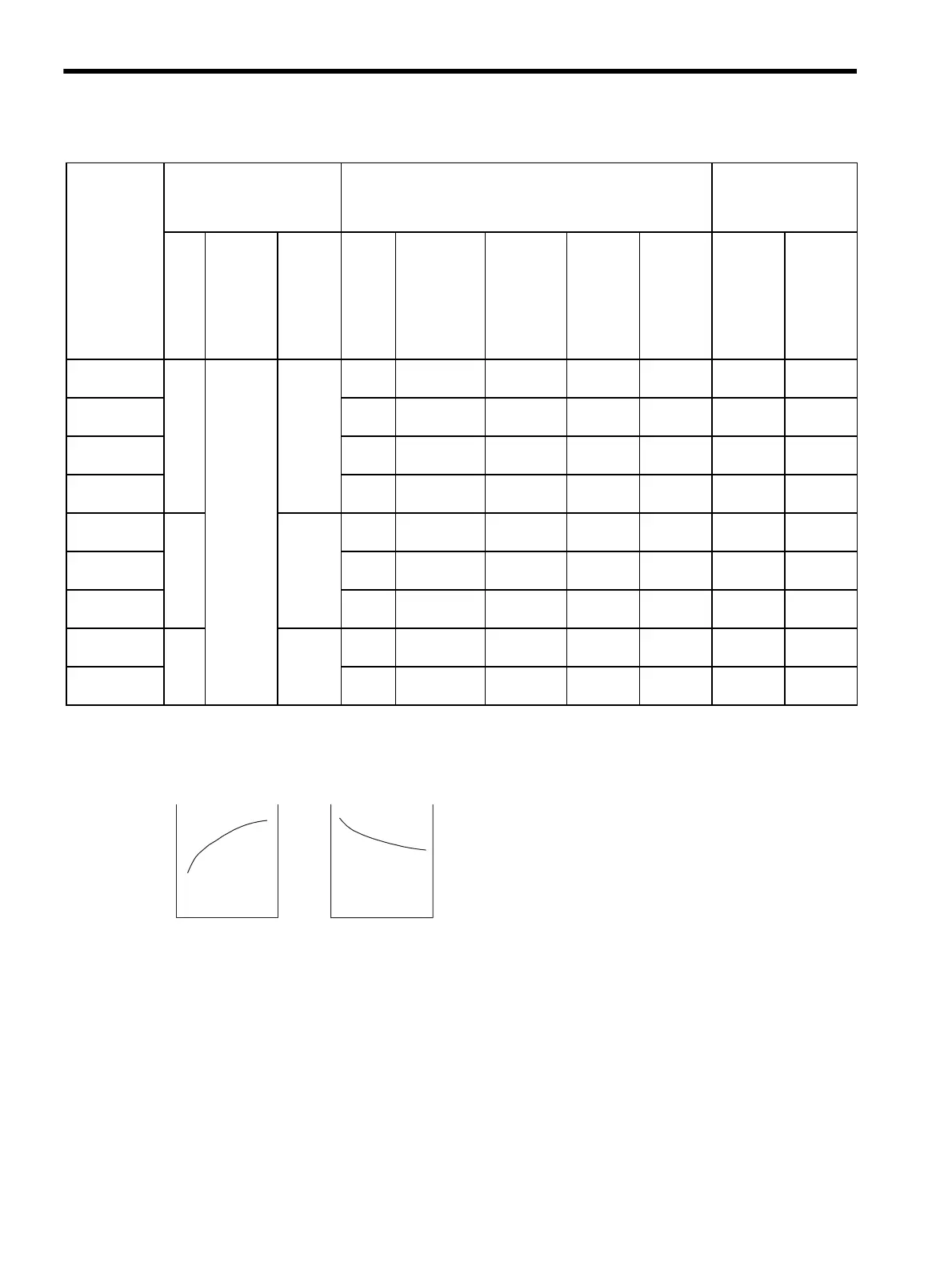 * 2. Output torque and motor speed produce the following trends in efficiency. Values in the table are at