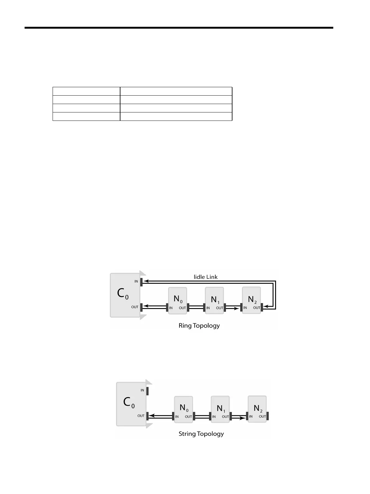 String topology (opened or terminated) is also supported where the network nodes are not connected back to the