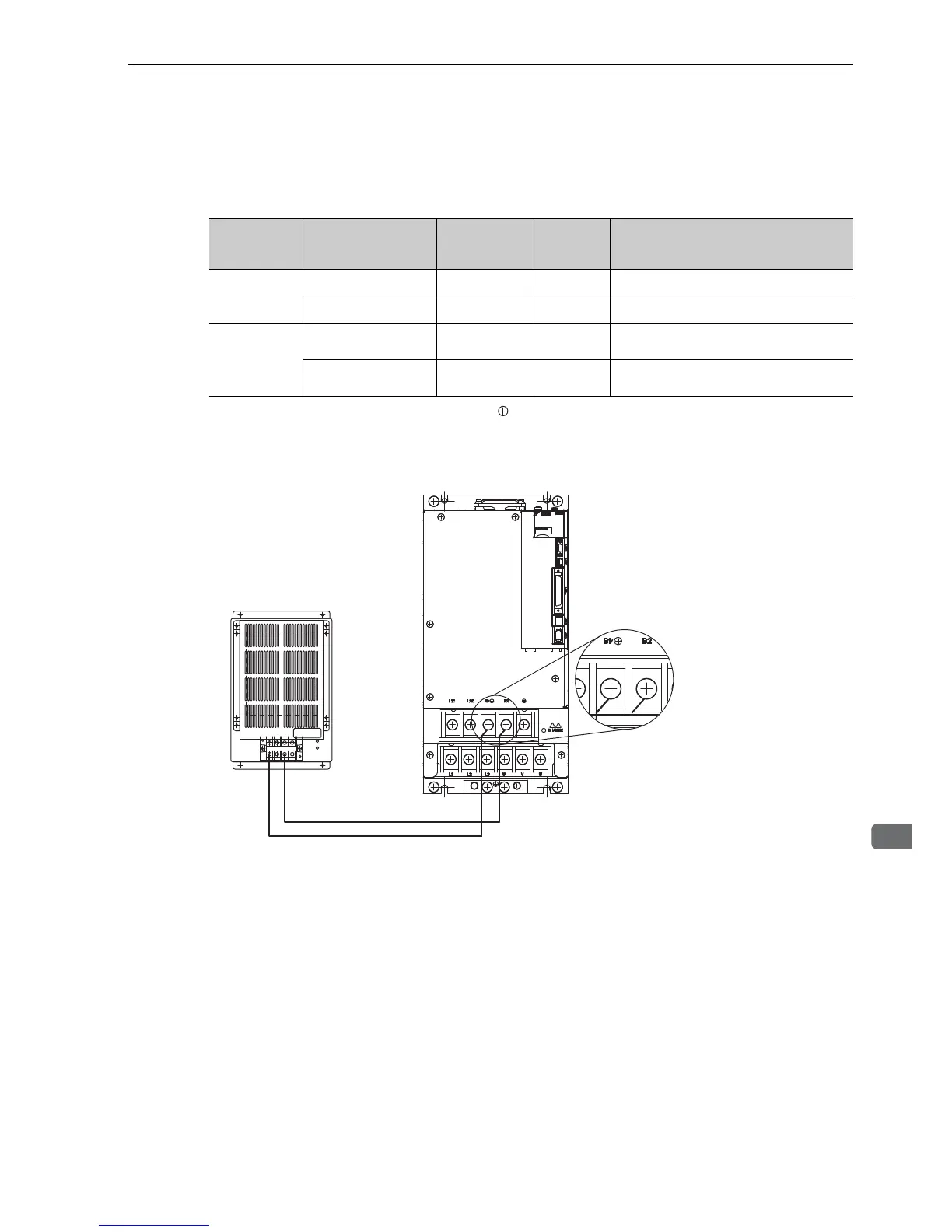 Connect a regenerative resistor unit between B1/ and B2 terminals.