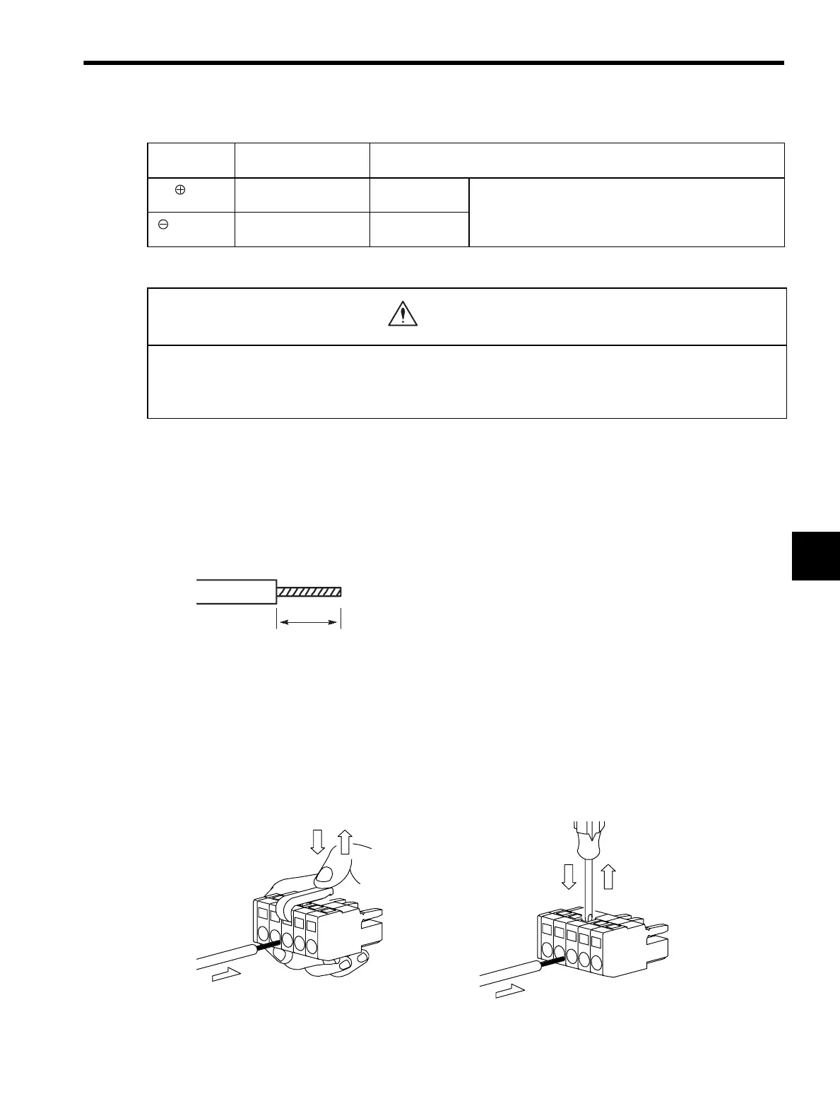 • Observe the following precautions when wiring main circuit terminal blocks.