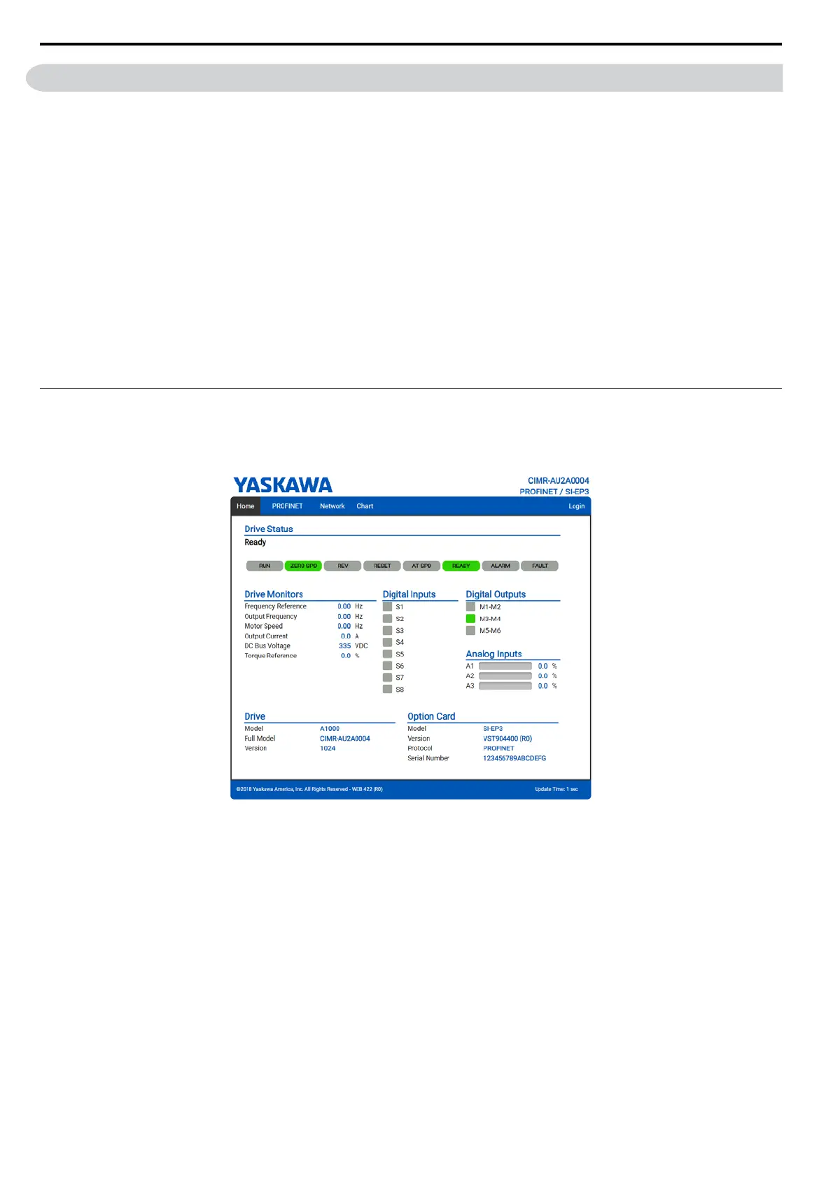 Note: The initial password is yaskawa. To change the password, open the Settings Page.