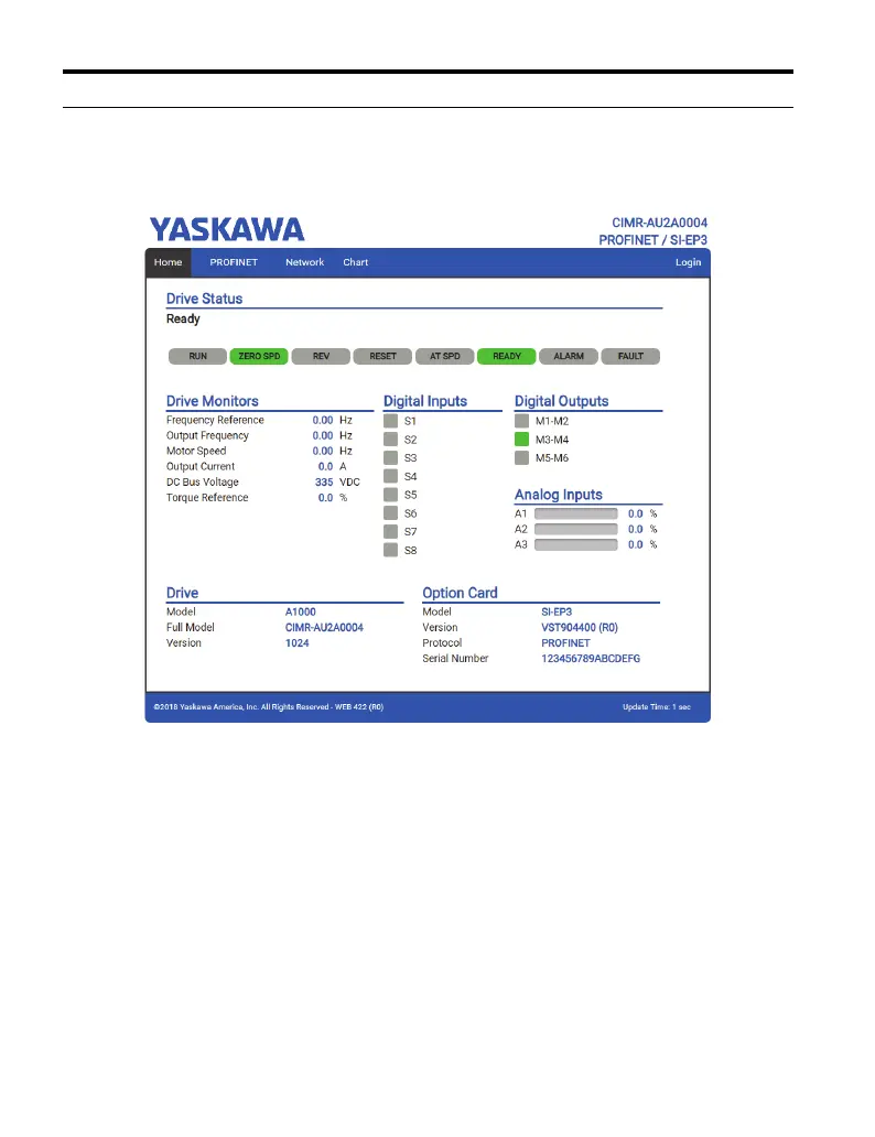 Note: The initial password is yaskawa. To change the password, open the Settings Page.