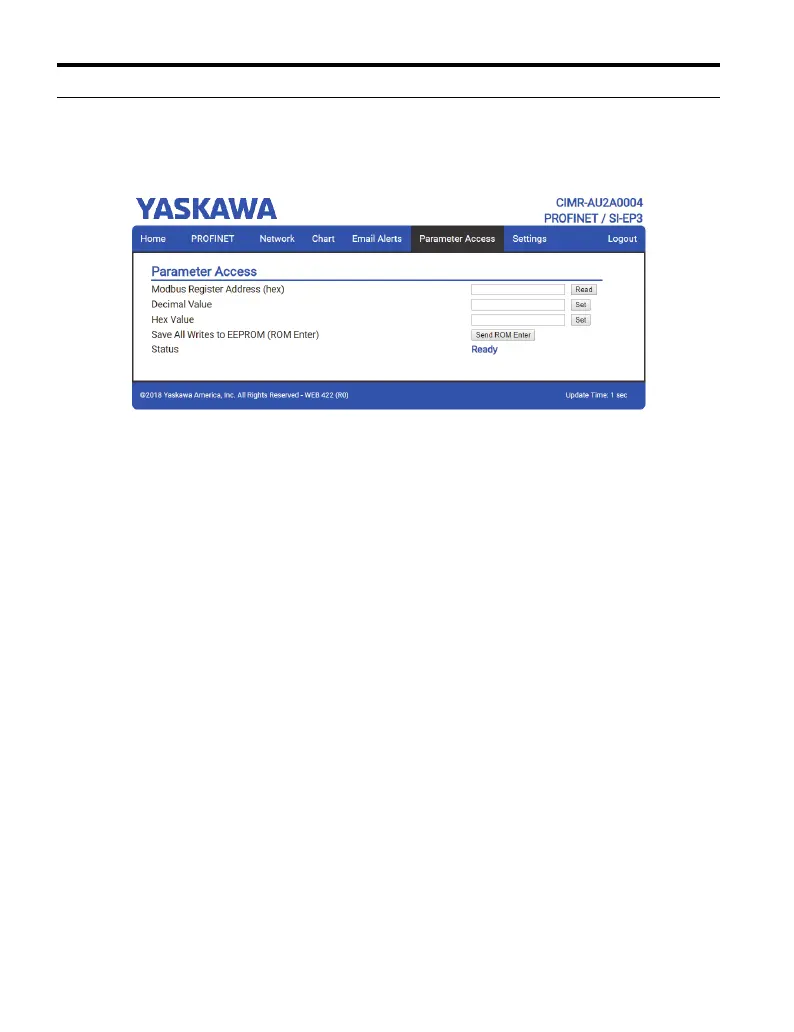 The Parameter Access page allows the user to read and write parameters from the drive.