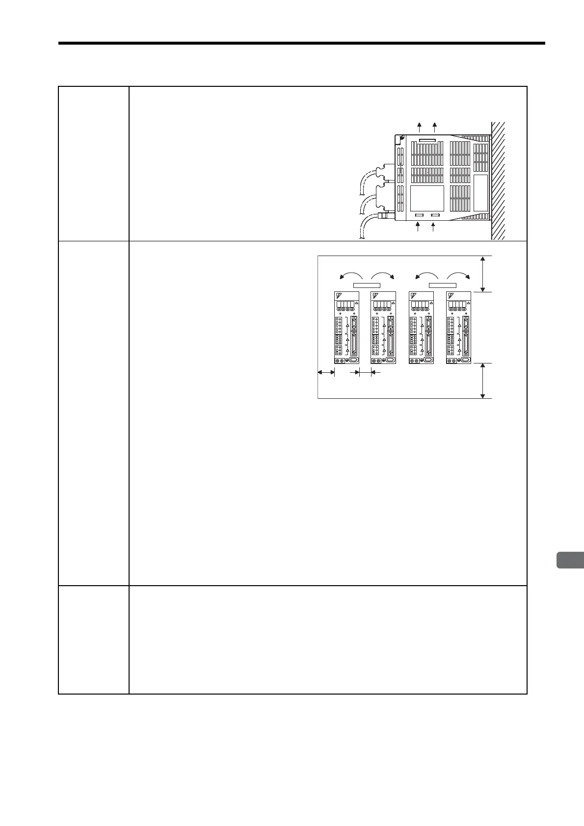 As shown in the figure above, allow sufficient space around each SERVOPACK for cooling by cooling fans