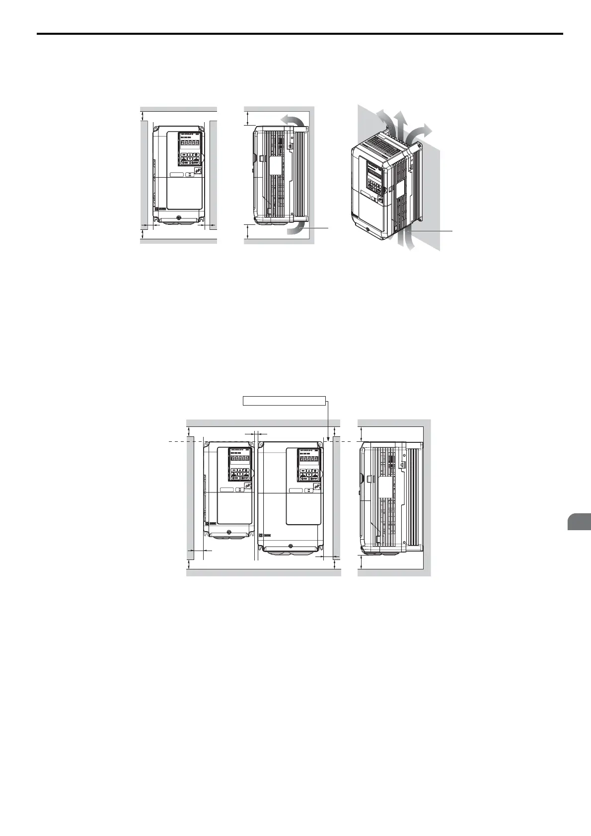 Models CIMR-T2A0004 through 0081 and 4A0002 through 0044 can take advantage of Side-by-Side installation.