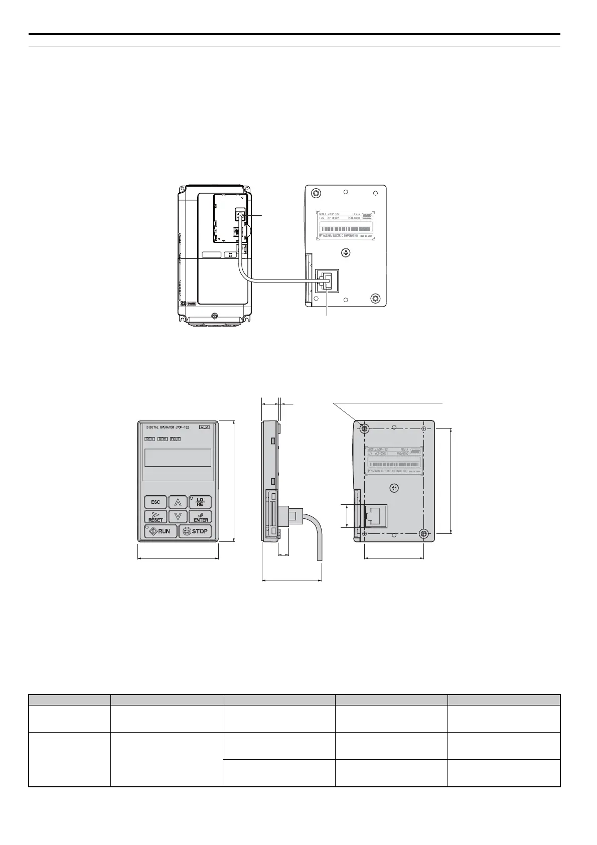 The digital operator mounted on the drive can be removed and connected to the drive using an extension cable up to 3 m