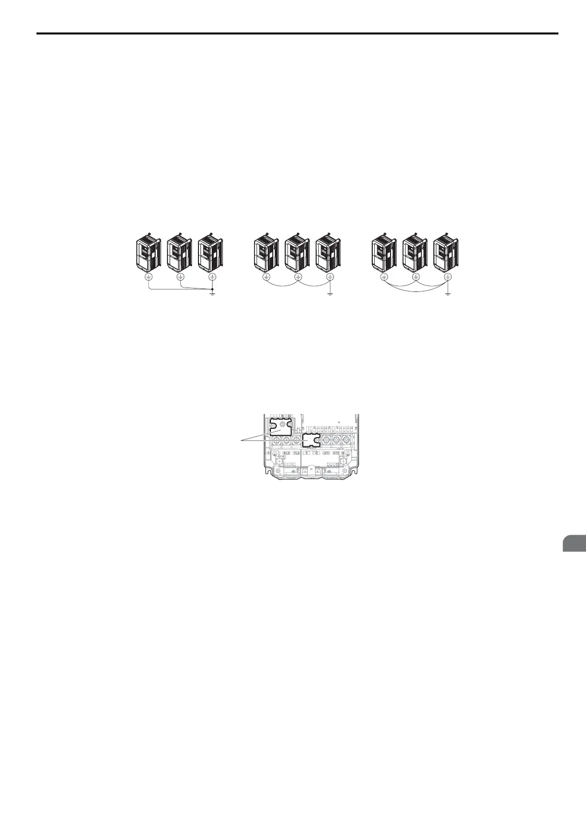 NOTICE: When using more than one drive, ground multiple drives according to instructions. Improper equipment grounding could