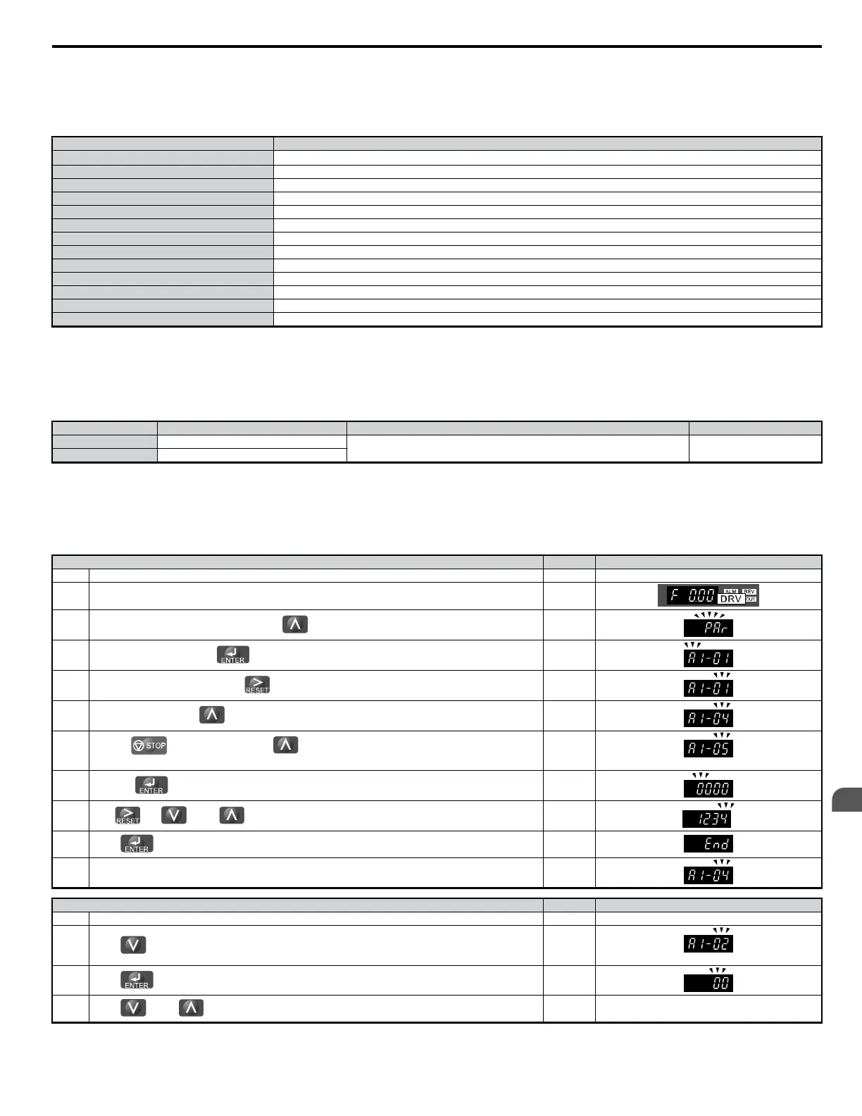 the correct password is entered, the following parameters cannot be viewed or edited: A1-01, A1-02, A1-03, A1-06, and A2-01 through A2-33.