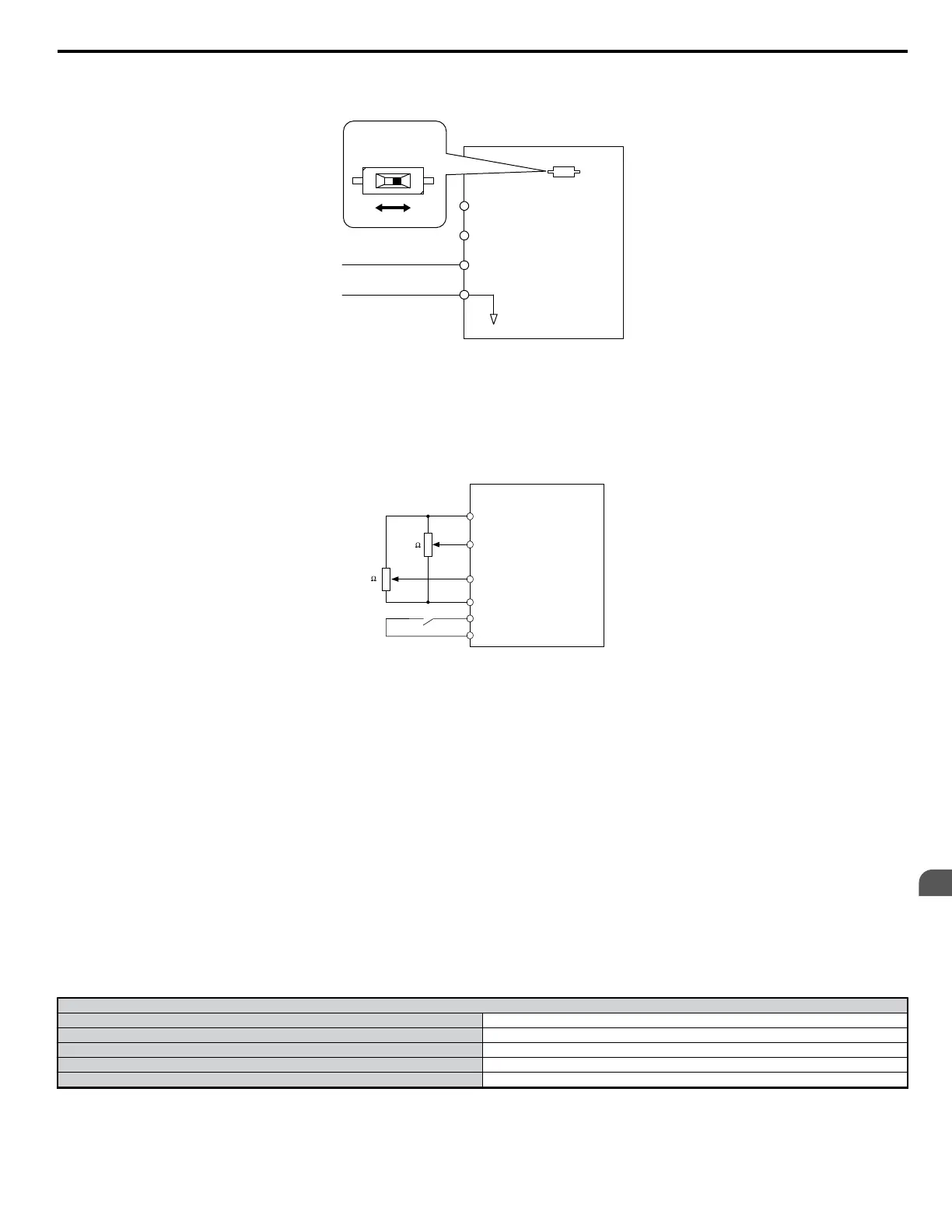 • Set the signal level for multi-function analog input terminal A2 to accept a 4 to 20 mA signal (H3-09 = 2), and the gain for input terminal A2 to 0