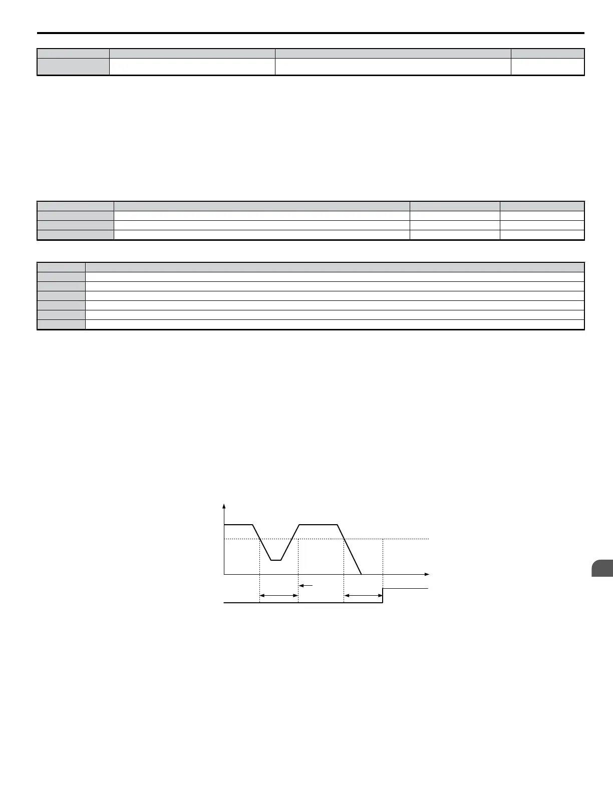 • b5-12 = 3: If the PID feedback value exceeds the PID feedback loss detection level (b5-13) for longer than the PID feedback loss detection time (b5-14),