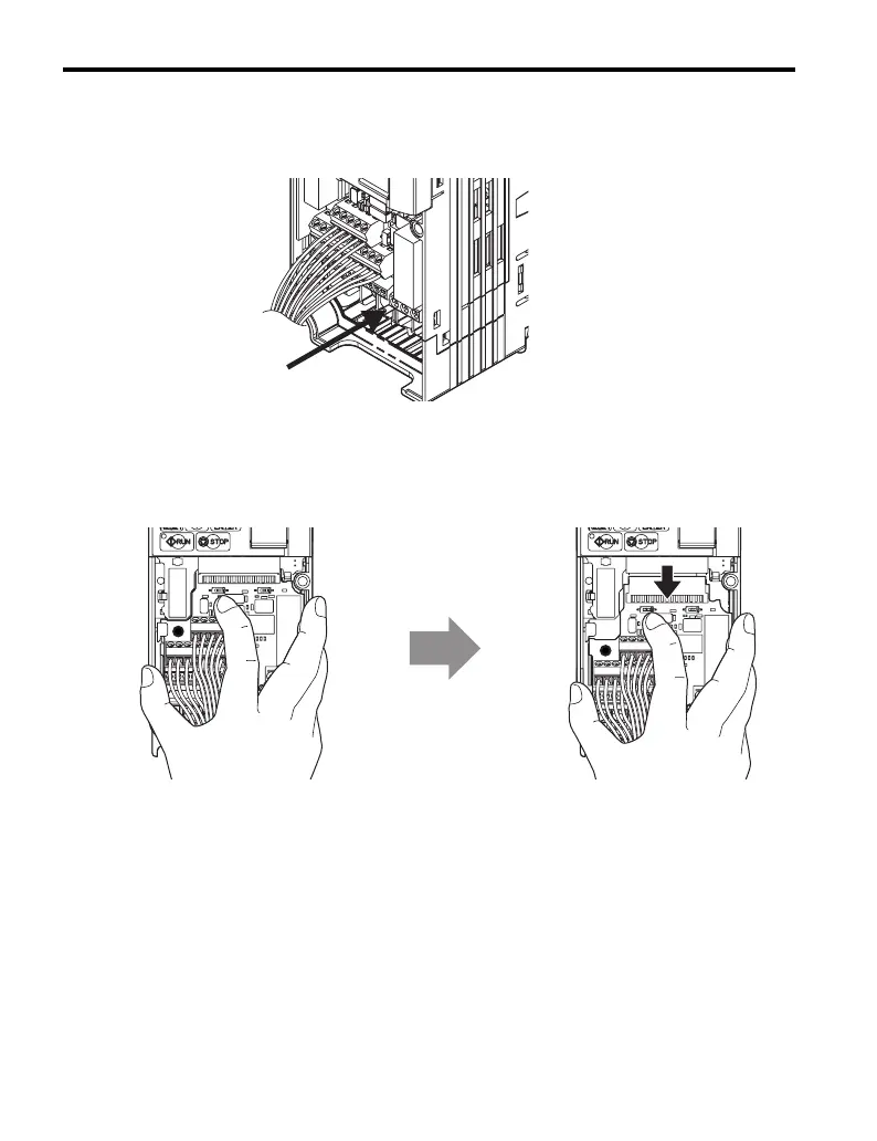 2. Depress the plastic tab on the case near the bottom of the terminal board