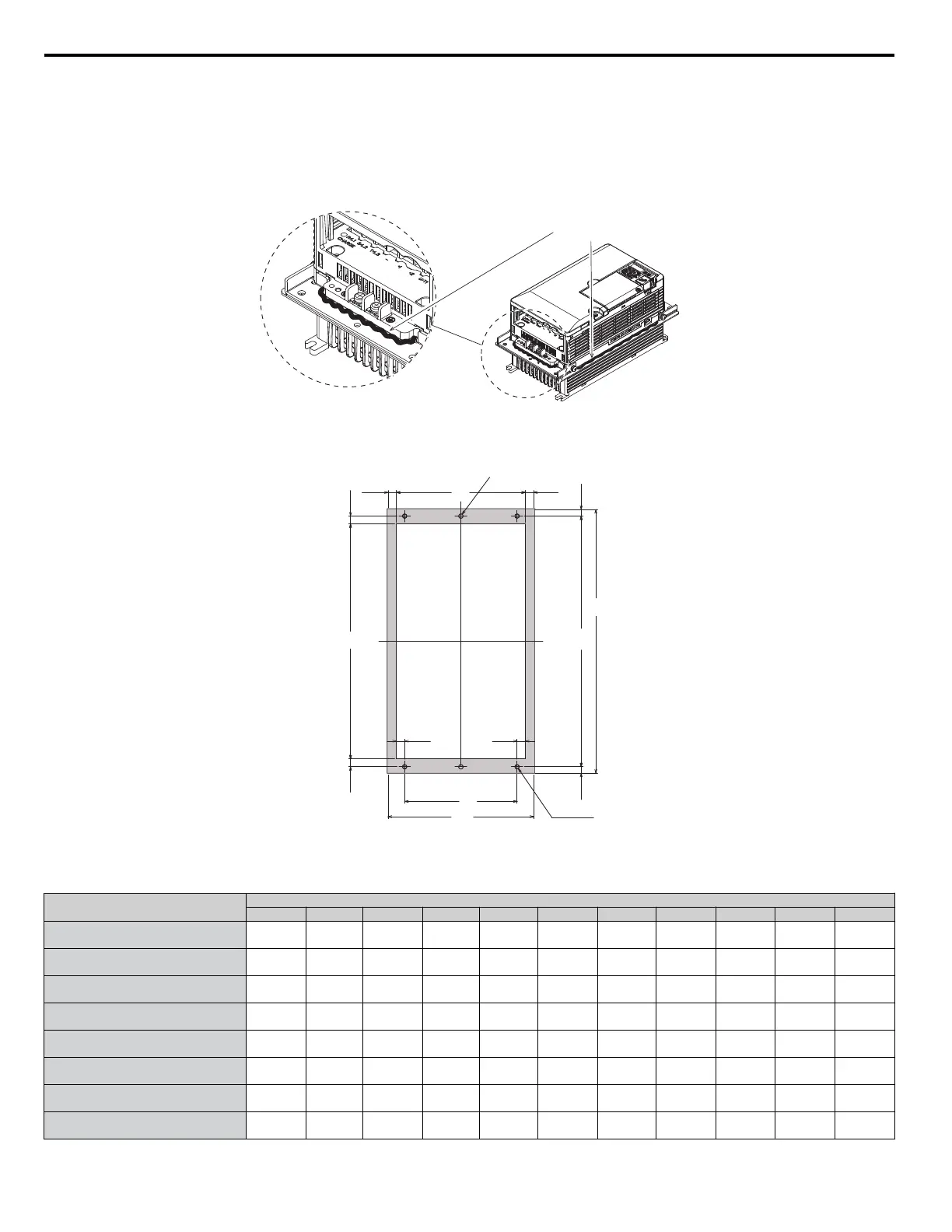 Table 8 Panel Cutout and Optional Gasket Dimensions (Procedure 5 NEMA Type1 Enclosure)