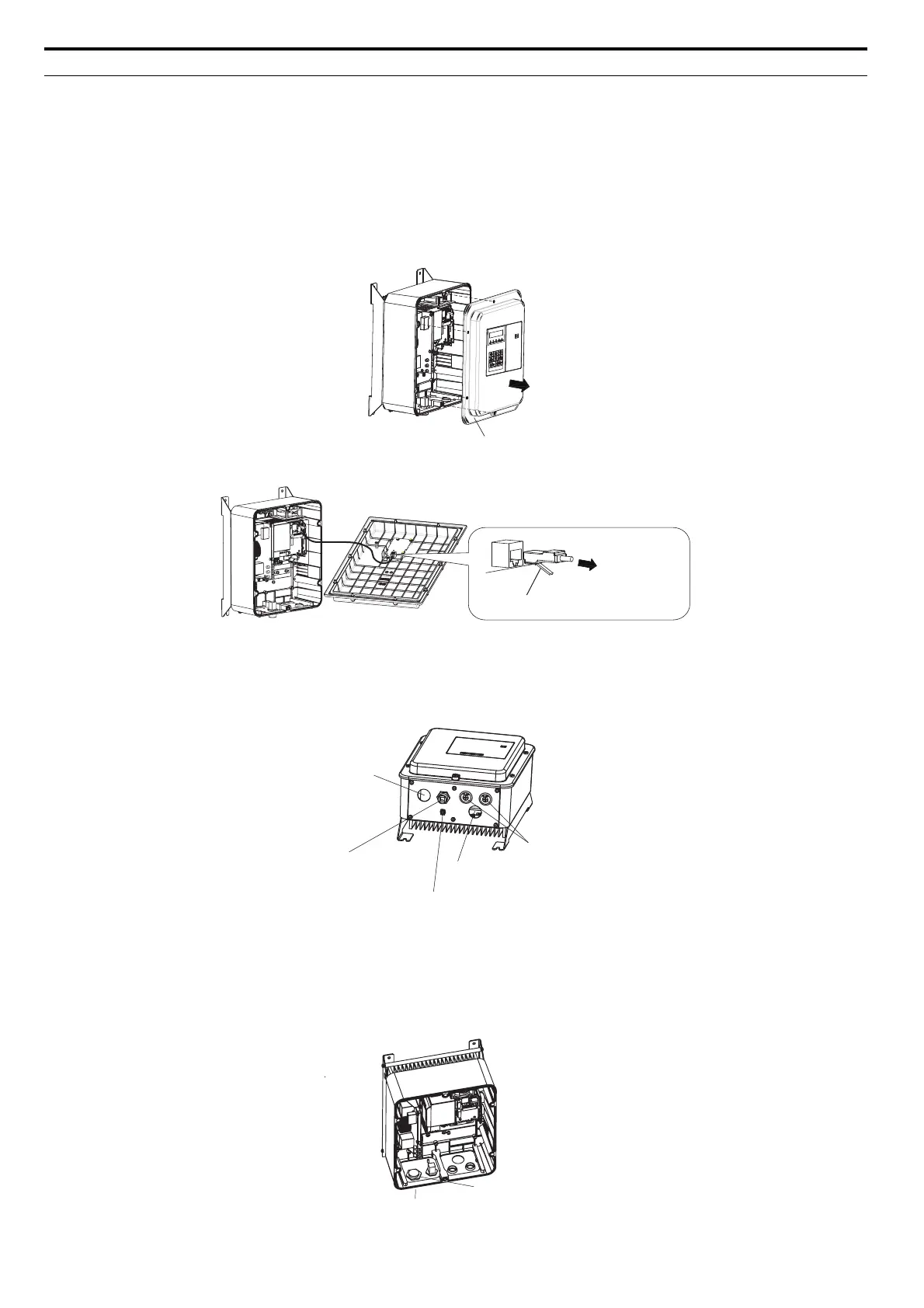 CIMR...-0080 (avec console numérique intégrée), le câble de raccordement de la console doit être débranché afin de pouvoir retirer le