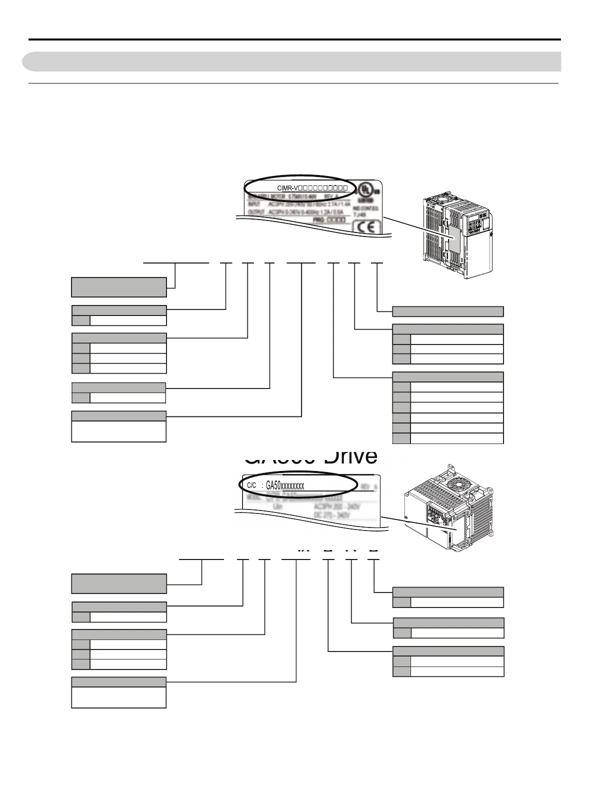 The catalog numbers differ slightly between the drive series. Use this number comparison to understand nameplate