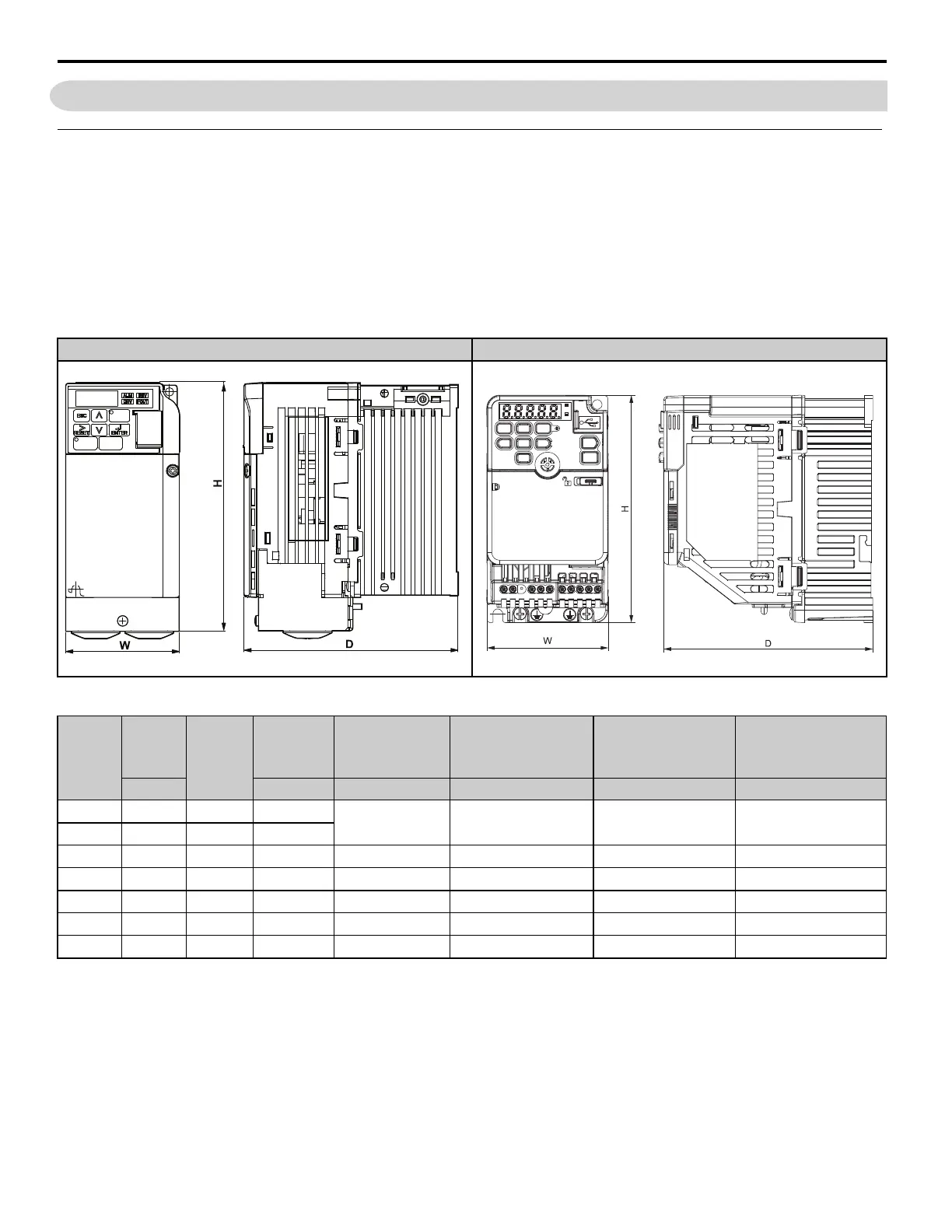 CIMR-VU GA50U Catalog Code H x W x D in H x W x D in H x W x D in