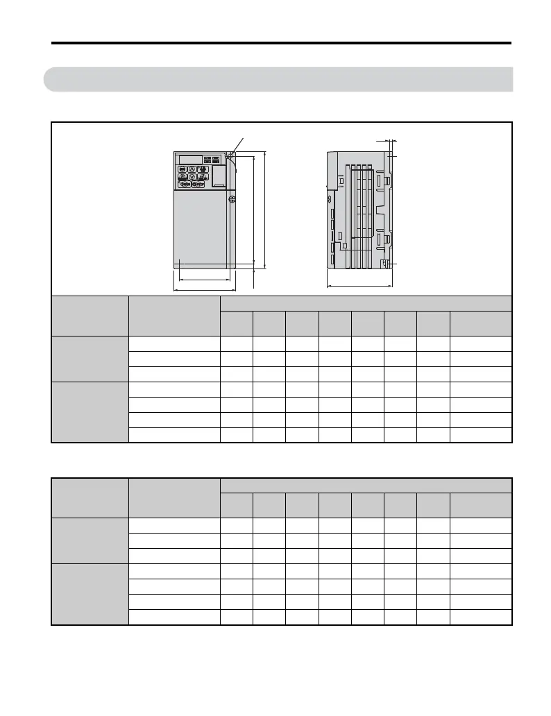 Table 8 V1000 Finless Dimensions for Models BA0001~2A0006 (metric)