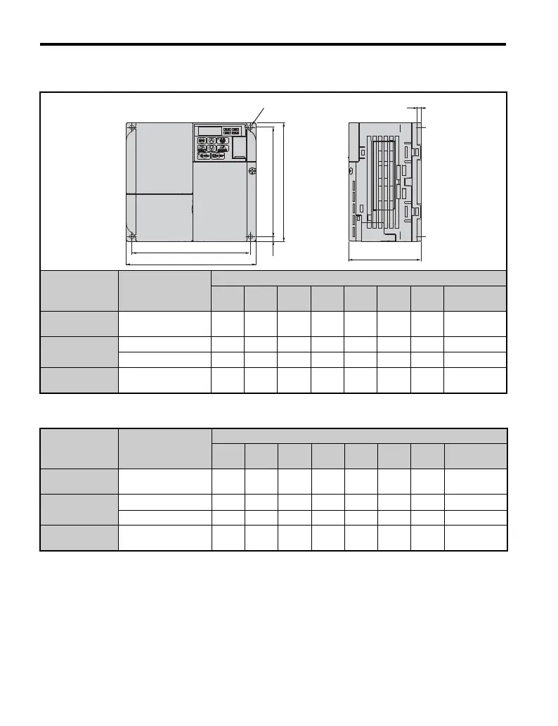 Table 12 V1000 Finless Dimensions for Models BA0012~4A0011(metric)