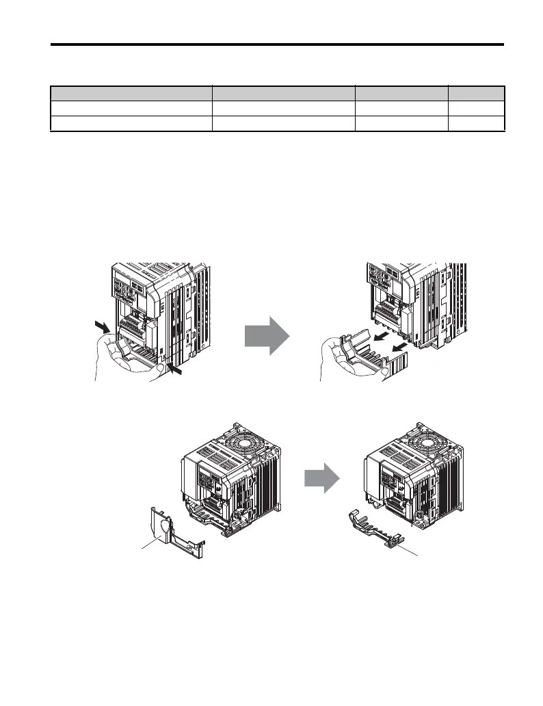 For IP20/Open-Chassis models CIMR-VAB, Remove the bottom cover