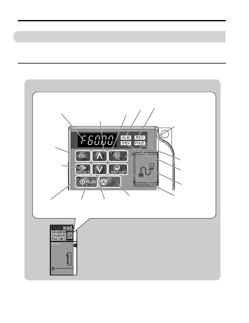Use the LED operator to enter run and stop commands, display data, edit parameters, as well