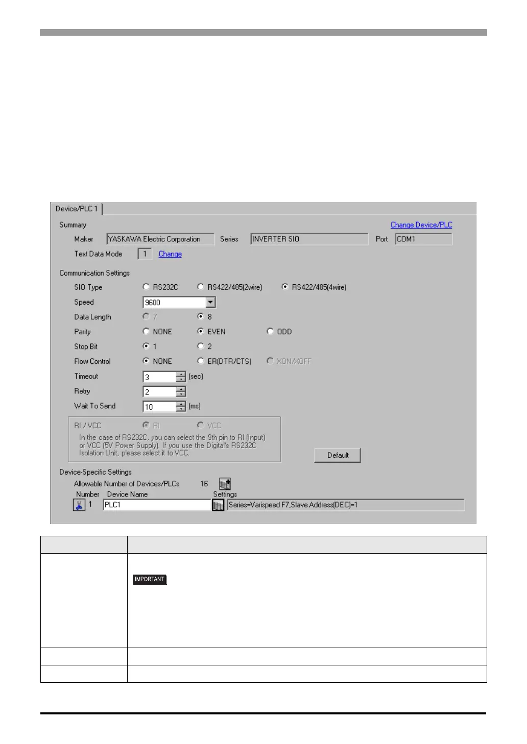 To display the setup screen, from the [System Settings] workspace, select [Device/PLC].