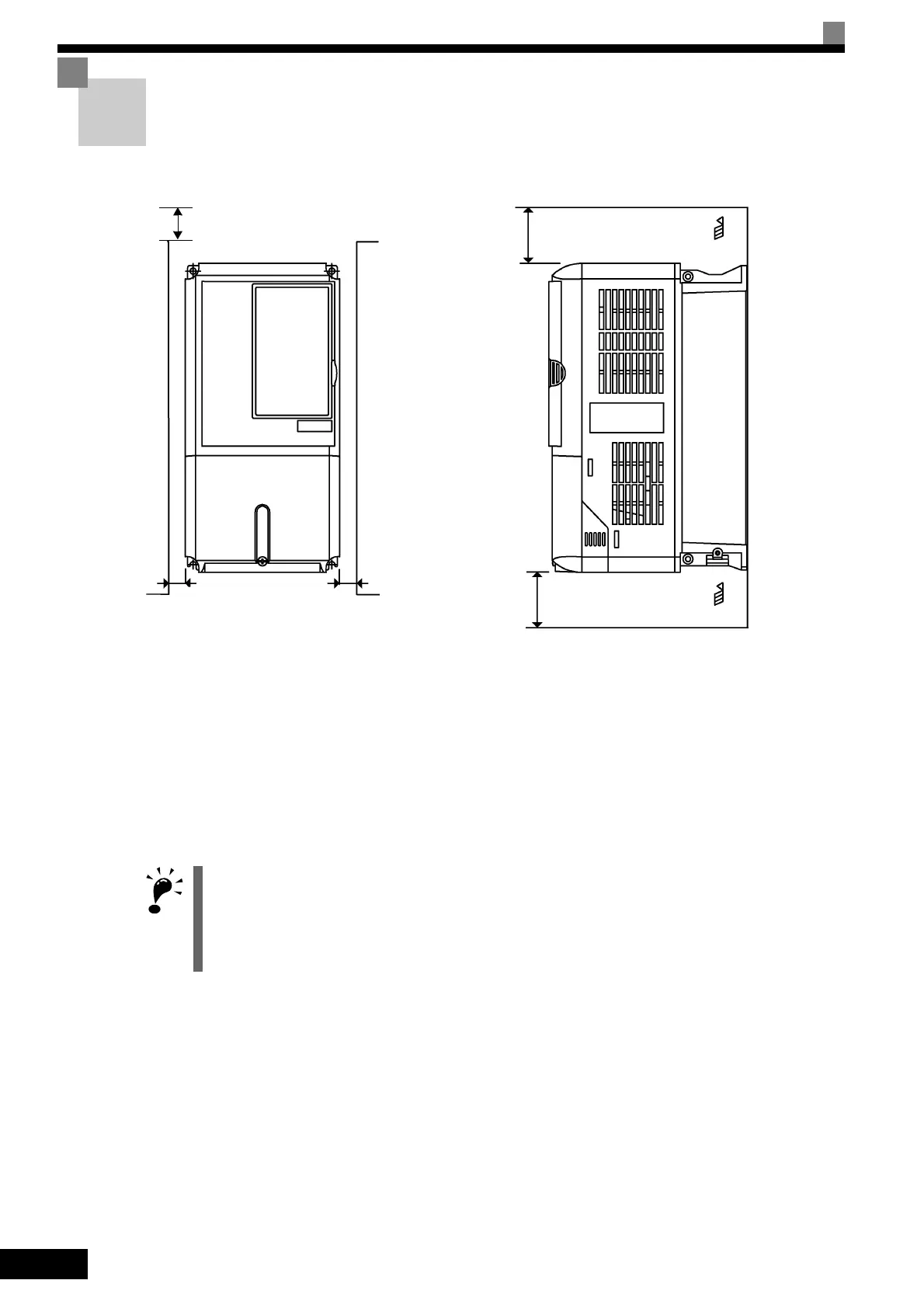Install the Inverter vertically so as not to reduce the cooling effect. When installing the Inverter, always