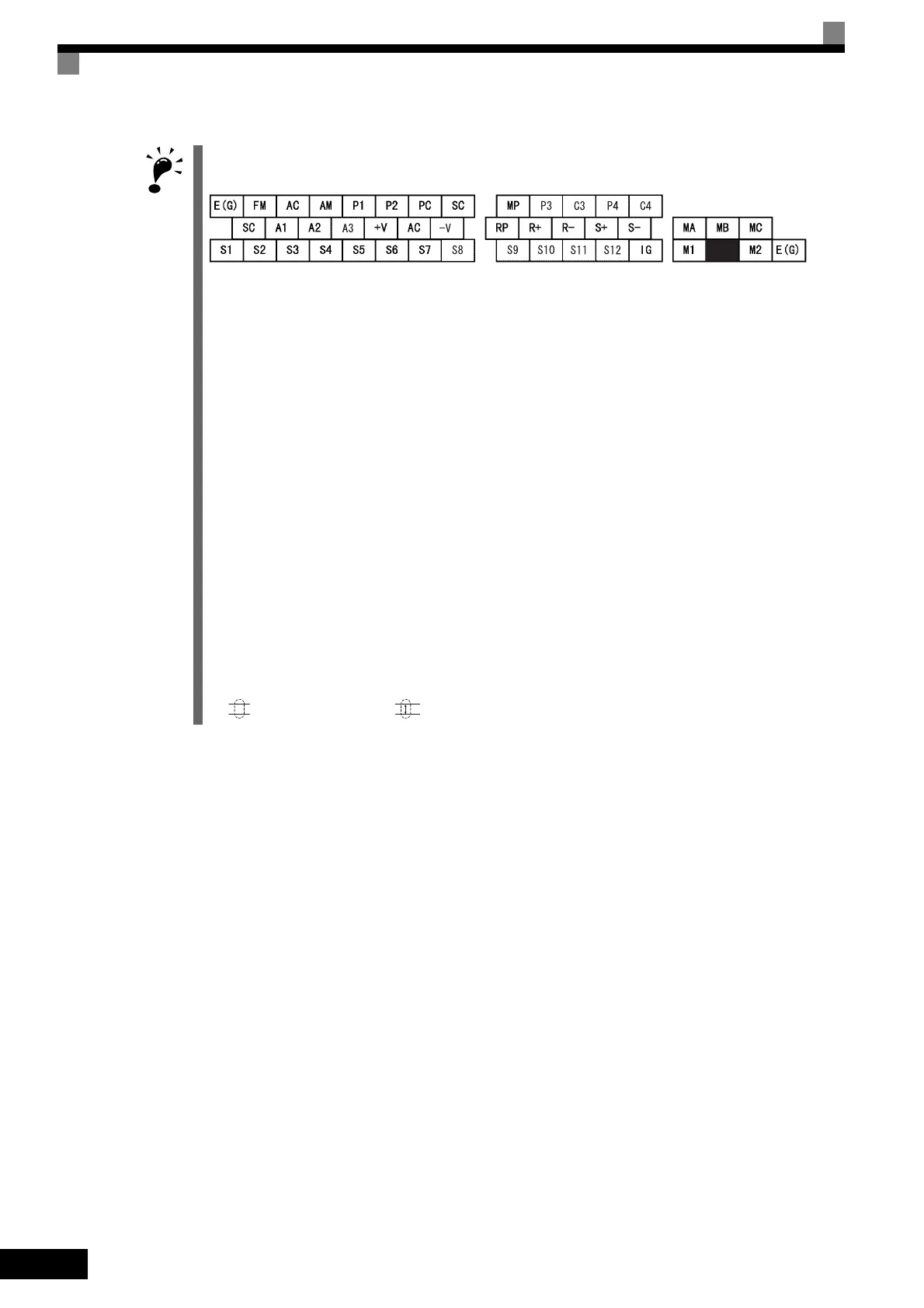 4. Main circuit terminals are indicated with double circles and control circuit terminals are indicated with single