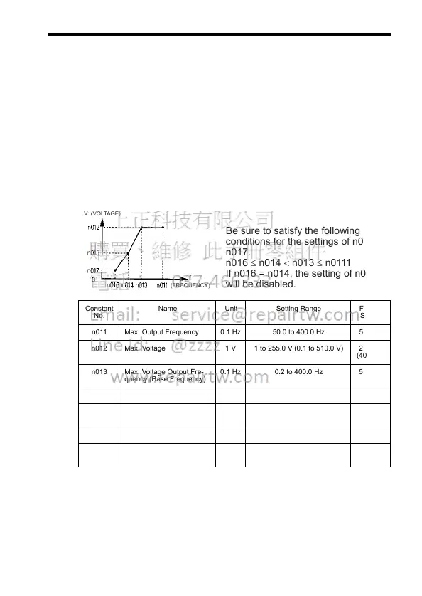 Set the V/f pattern in n011 to n017 as described below. Set each pattern