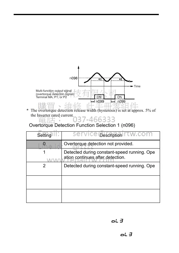 2. To continue operation after overtorque detection, set n096 to 1 or 3.