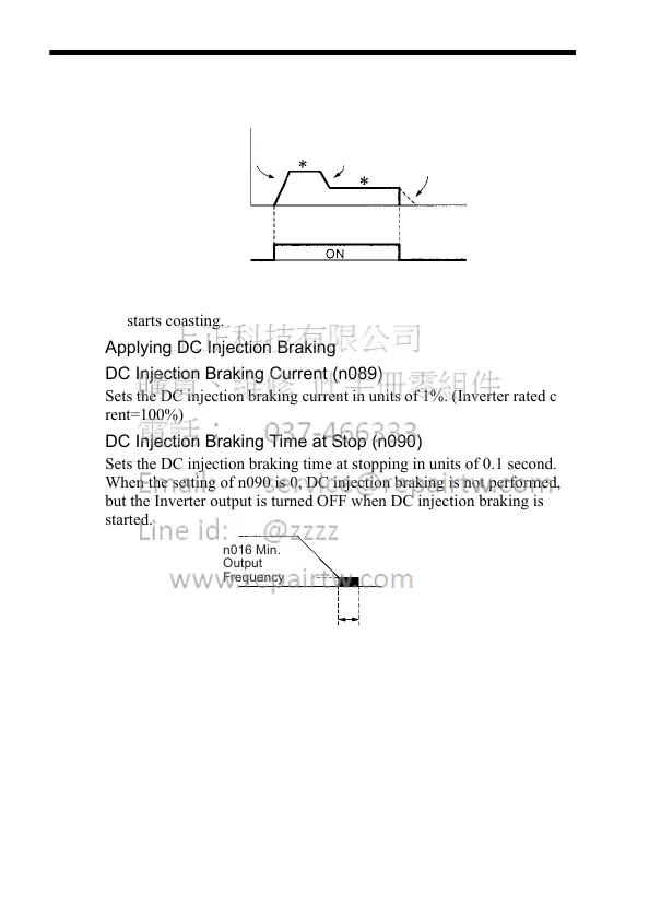 When the setting of n090 is 0, DC injection braking is not performed,